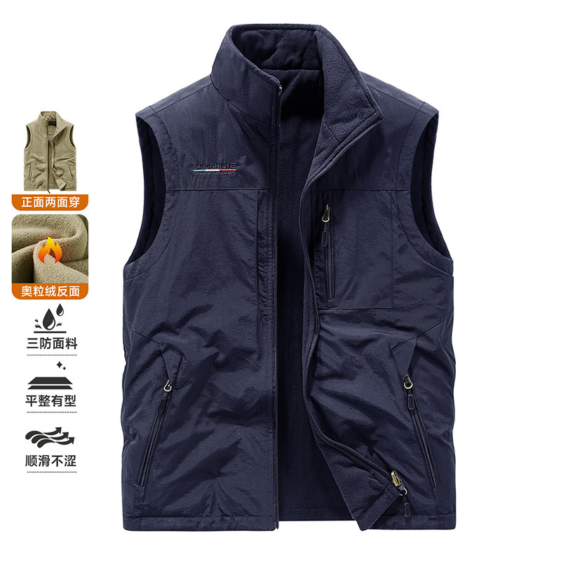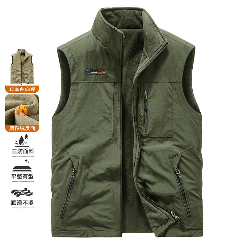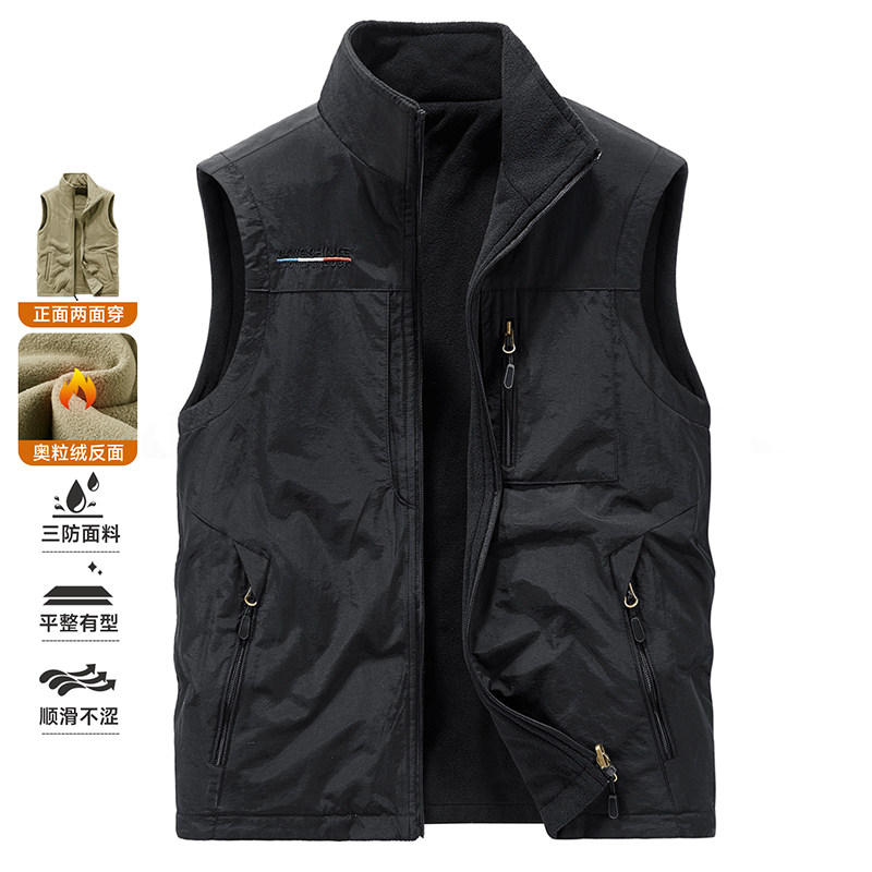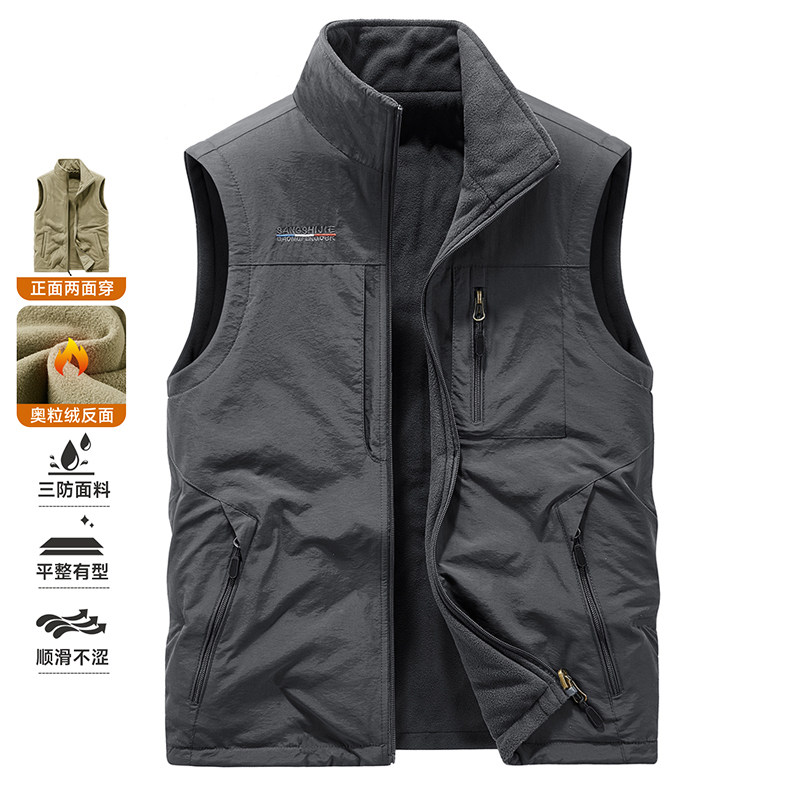 户外马甲双面穿春秋保暖多口袋马夹工装男摇粒绒加绒背心外套防风