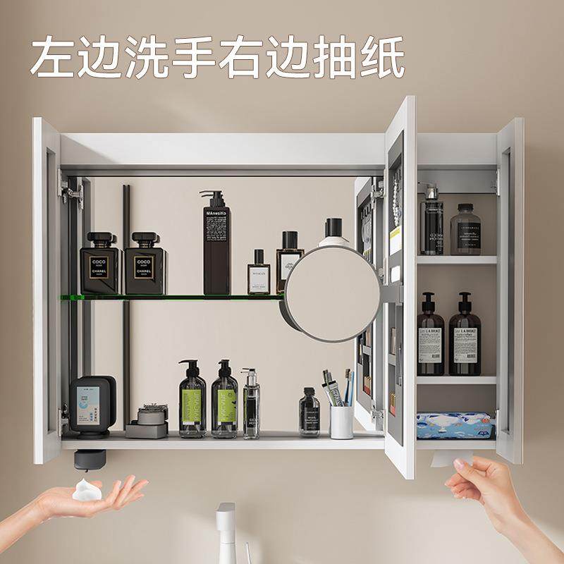 肤感板实木浴室柜感应洗手液机纸巾口美妆智能镜卫生间洗漱台R085