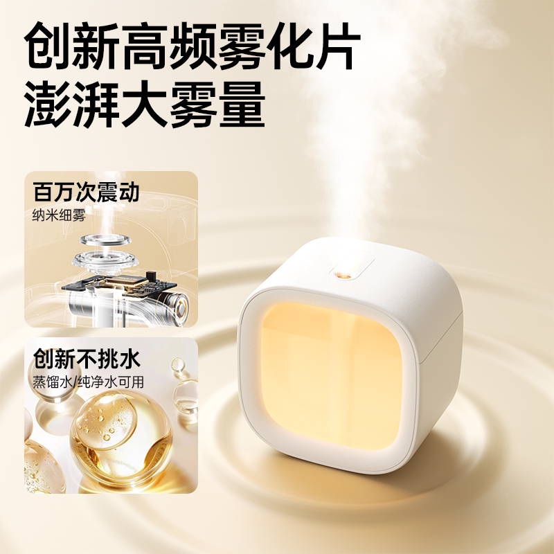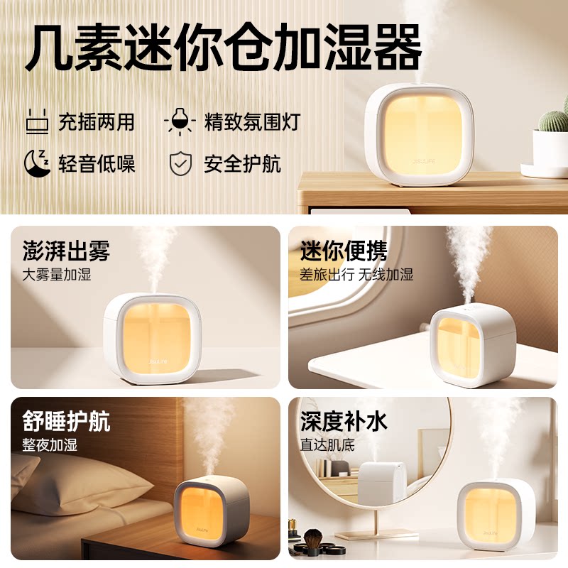 几素加湿器小型办公室桌面卧室宿舍家用迷你夜灯空气香薰喷雾净化