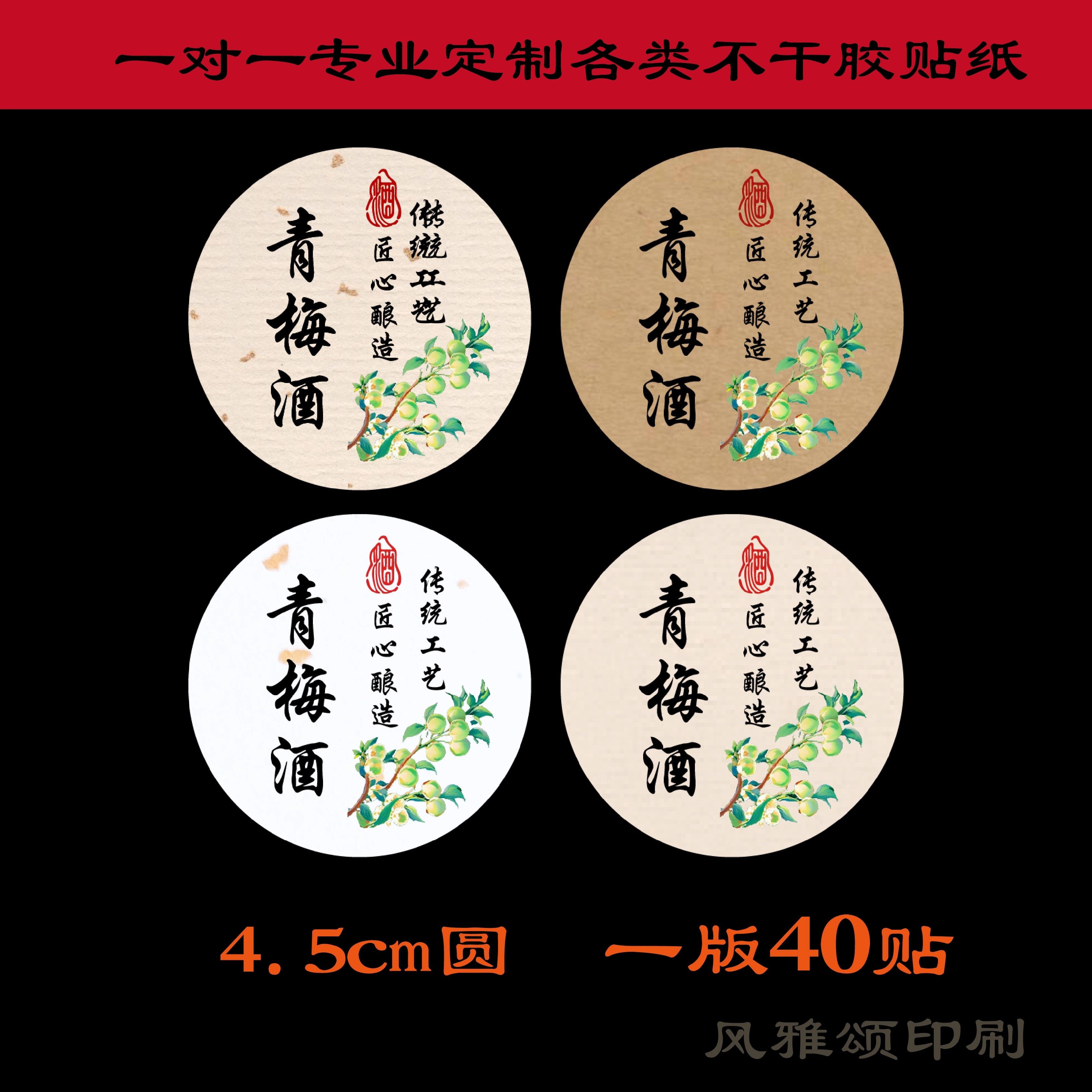 青梅酒贴纸手写日期空白不干胶标签自粘贴纸果酒瓶包装封口贴定制