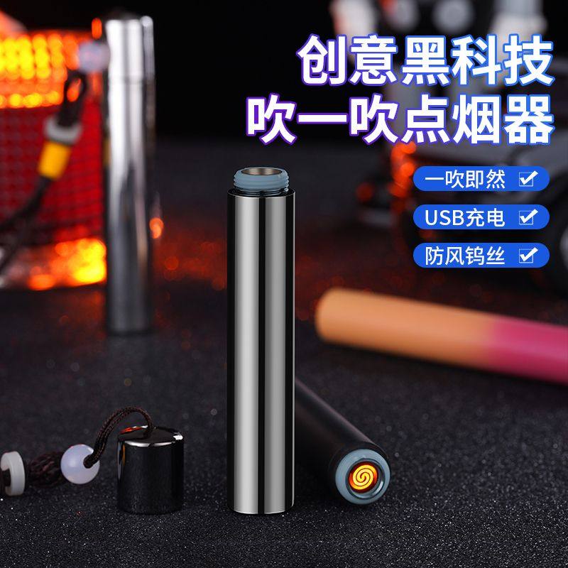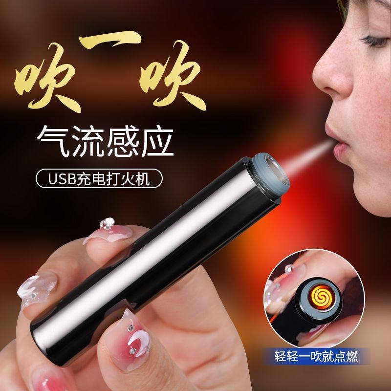 【礼盒装】充电款打火机雕刻火折子防风复古创意吹一吹气电子点烟器老公父亲节送男朋友生日礼物网红