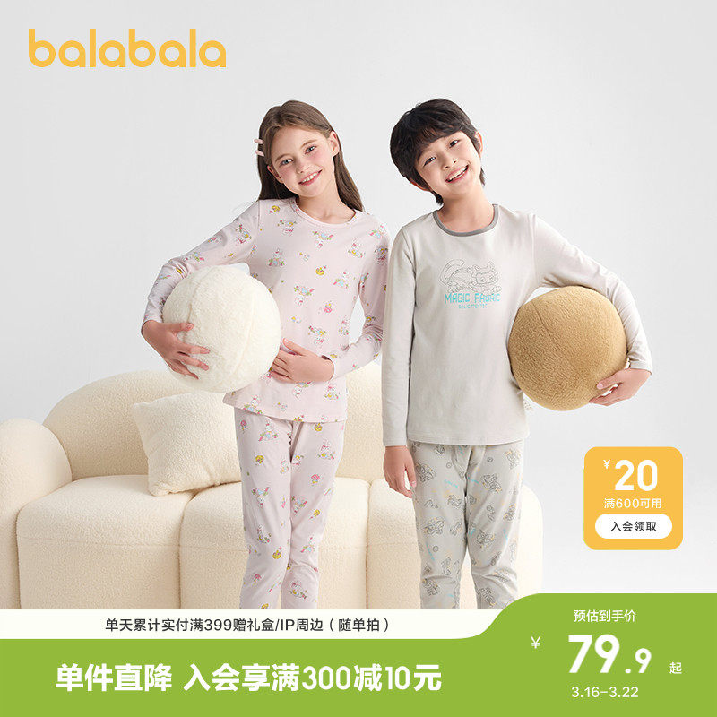 巴拉巴拉男童内衣套装棉春秋季新款薄小童打底棉毛衫宝宝中童睡衣
