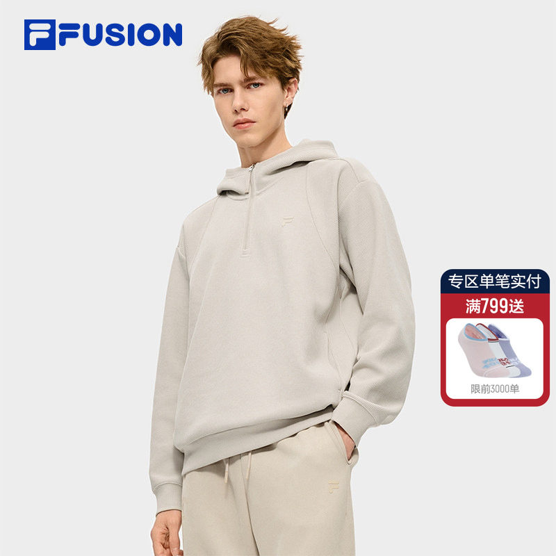 FILA FUSION斐乐潮牌男子连帽卫衣2026春季新款休闲宽松针织上衣