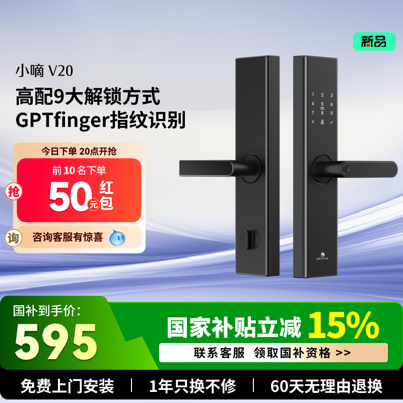 德施曼指纹锁家用防盗门密码锁机械密码电子智能锁小嘀V20新品