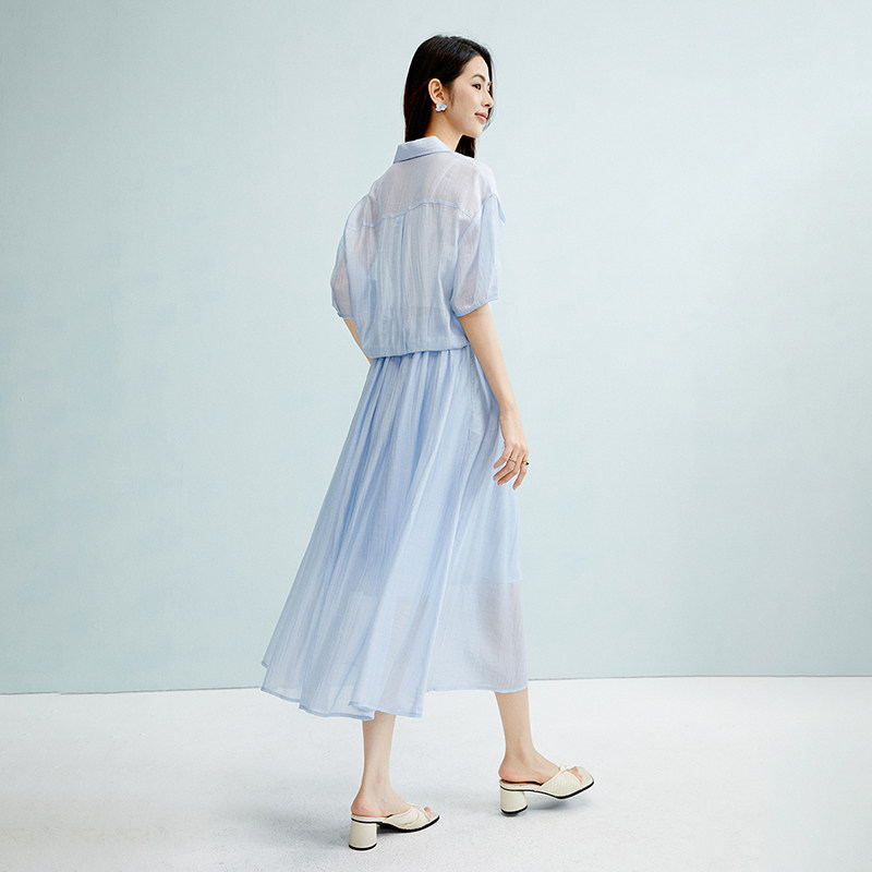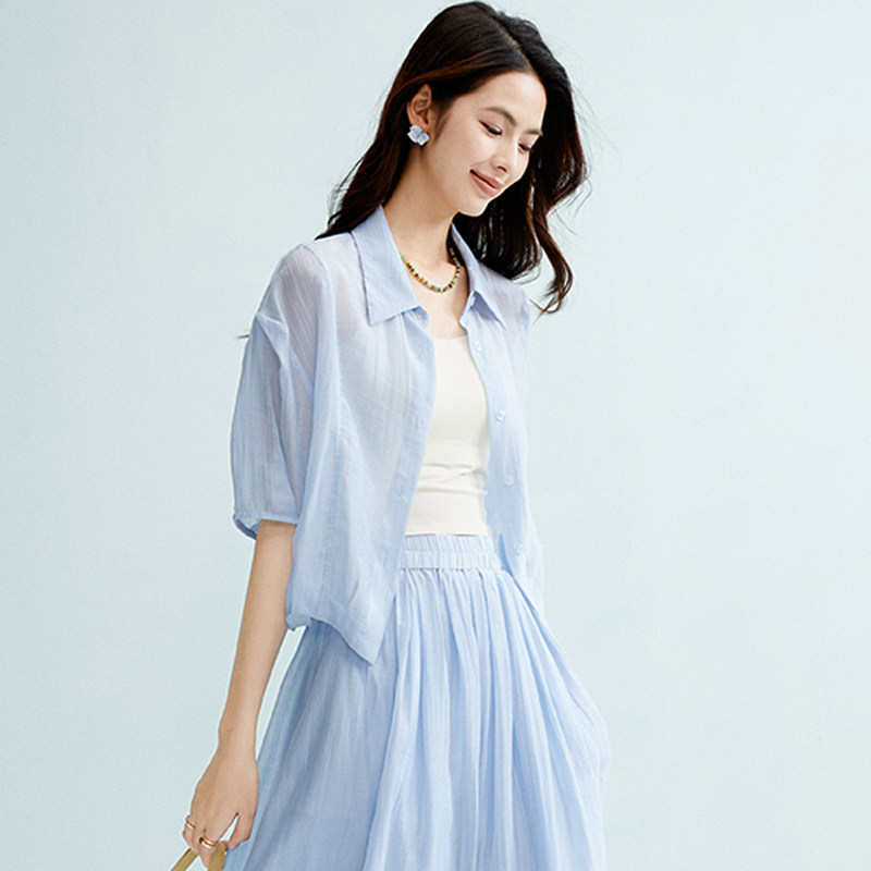 晚白【断码清仓】2025夏气质上衣莱赛尔轻薄短袖衬衫女