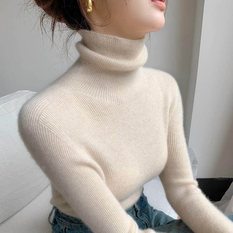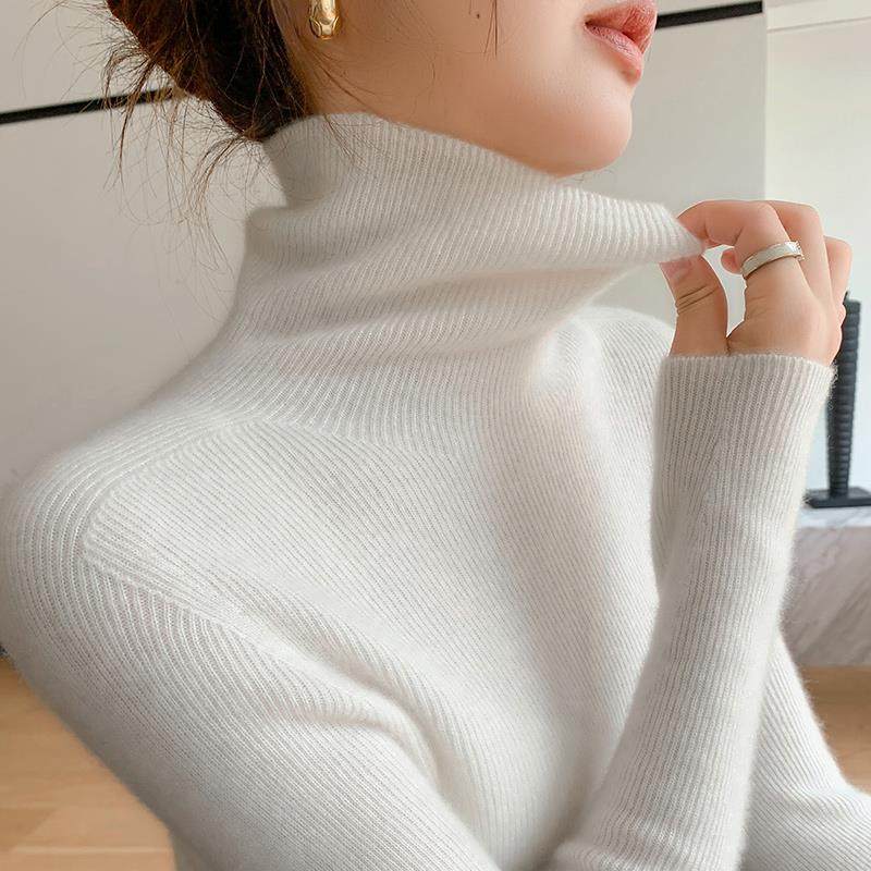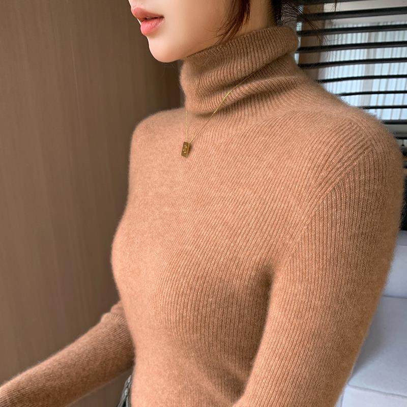 秋冬加厚高领羊毛衫女修身毛衣内搭紧身翻领打底可外穿显瘦针织衫