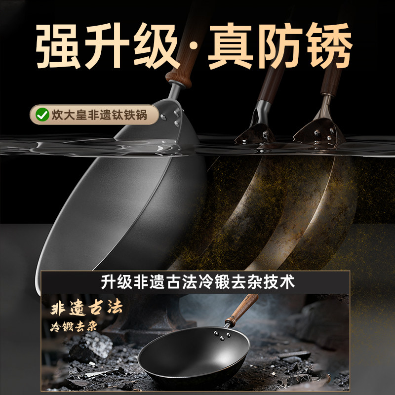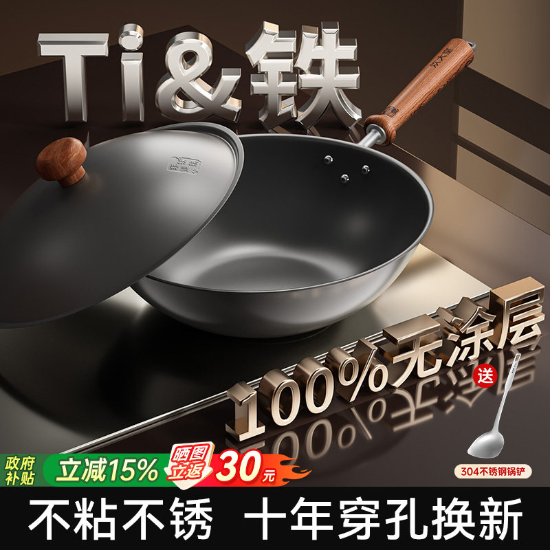炊大皇钛铁锅家用炒菜平底不粘锅无涂层不锈已开锅电磁炉燃气通用