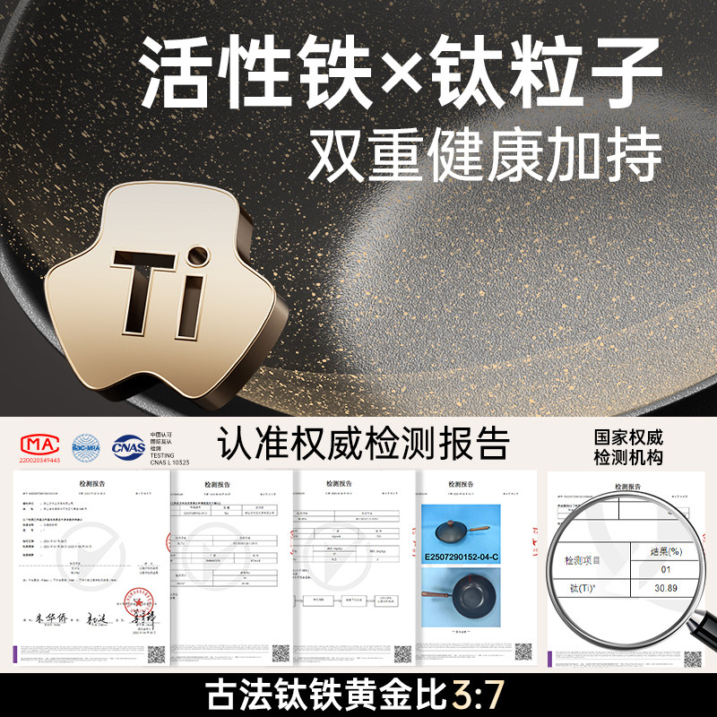 康巴赫有钛铁锅不粘锅无涂层炒锅家用炒菜锅电磁炉燃气专用锅子