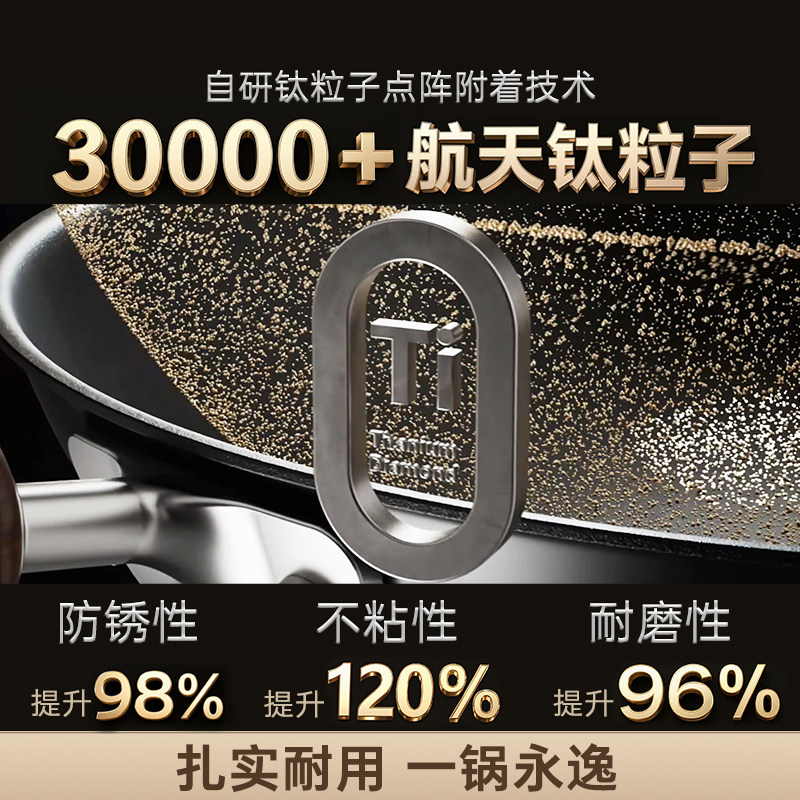 德国三头鹰无涂层钛锅不粘锅电磁炉燃气纯钛炒锅多功能家用炒菜锅