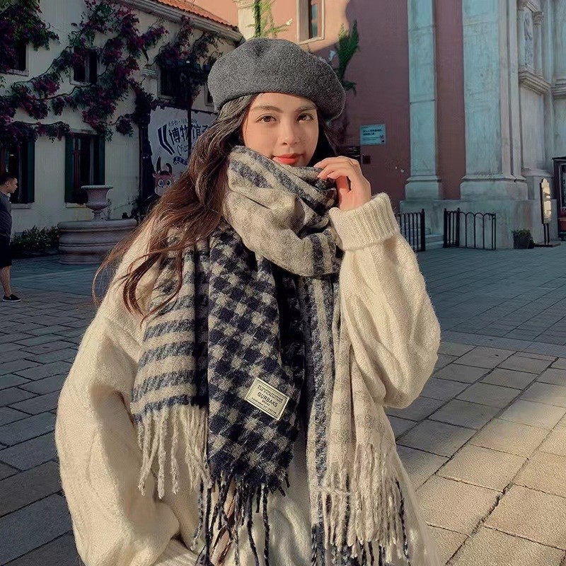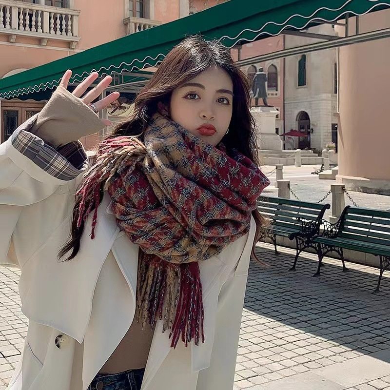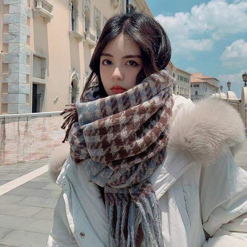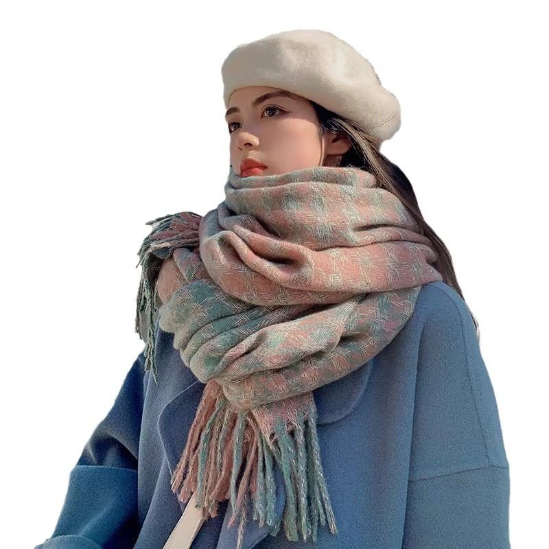 护颈围巾女氛围韩系冬季感披肩外搭保暖加厚情侣千鸟格围脖格子