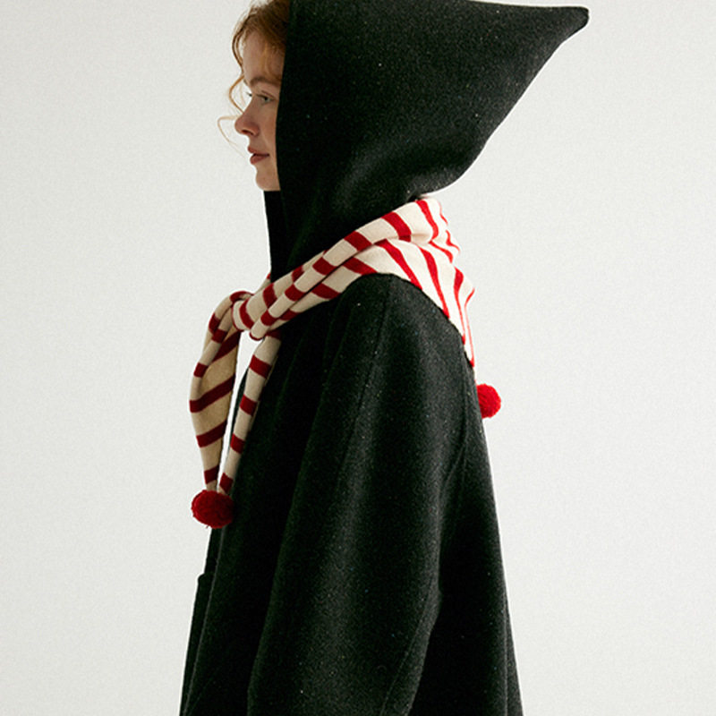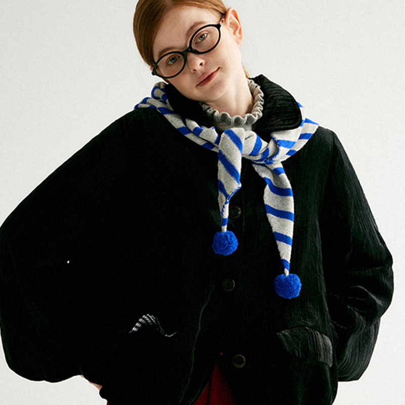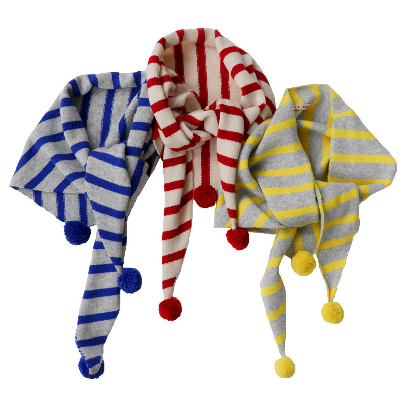 日系手工球球毛线针织条纹三角围巾新款保暖条纹围脖外搭披肩女