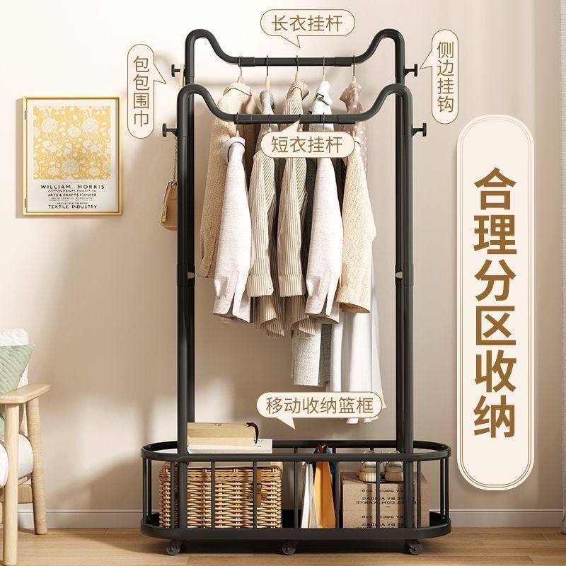 晾衣架落地家用可移动卧室凉衣架阳台挂衣服架子室内简易杆衣帽架