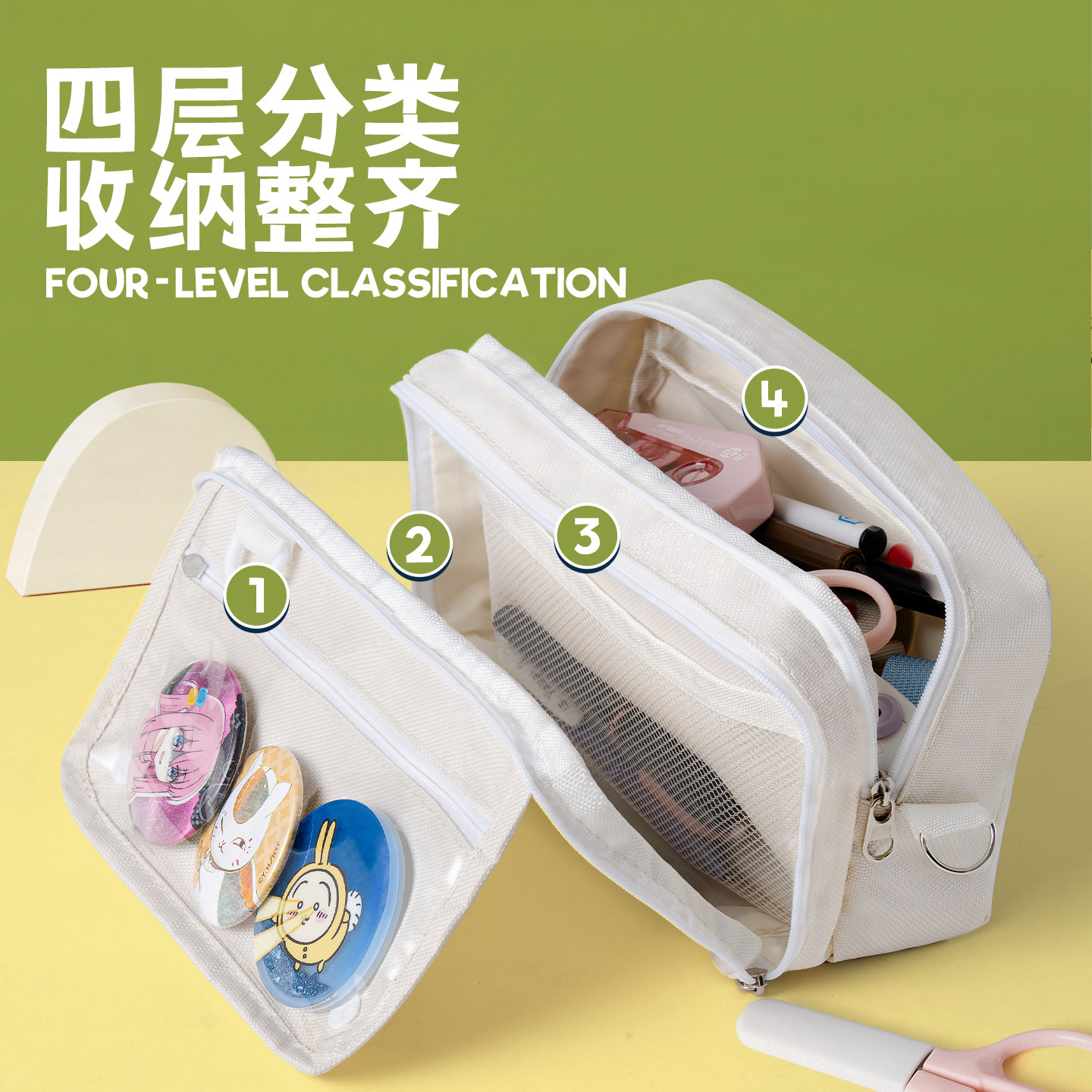 urdi痛包笔袋大容量可放吧唧耐脏帆布新款高颜值ins风隐藏痛透明笔袋女生文具袋简约小学生女孩