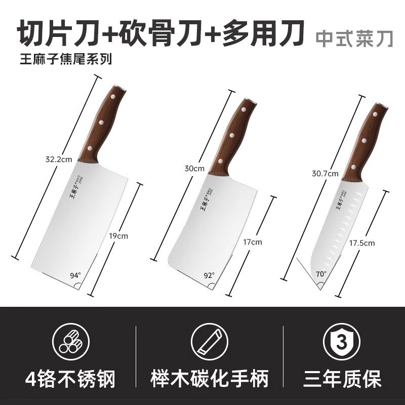 王麻子刀具套装家用厨房一全套辅食厨具组合工具三件套菜刀旗舰店