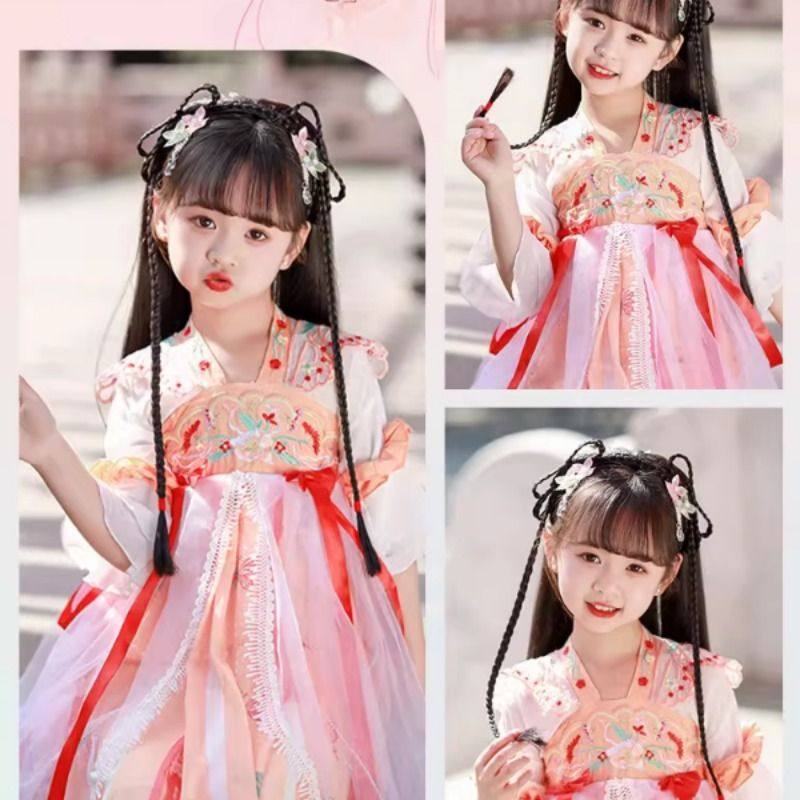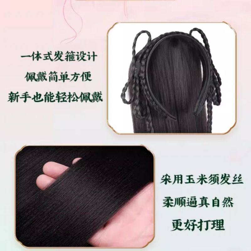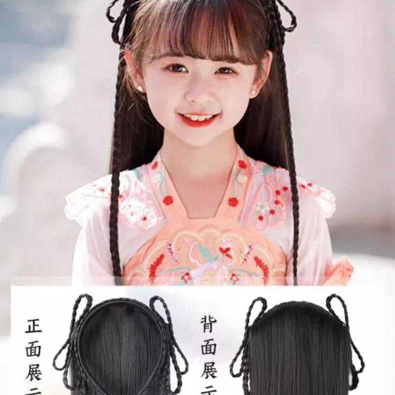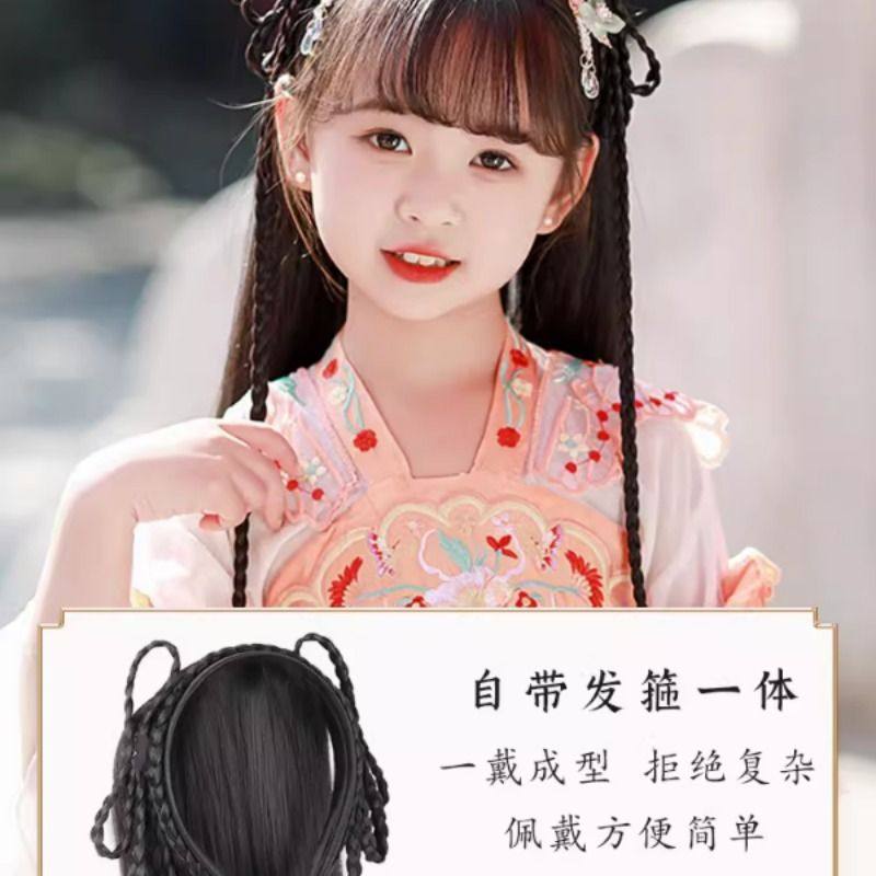 儿童汉服头饰假发包古装一体式懒人发箍造型古风女童辫子表演发髻