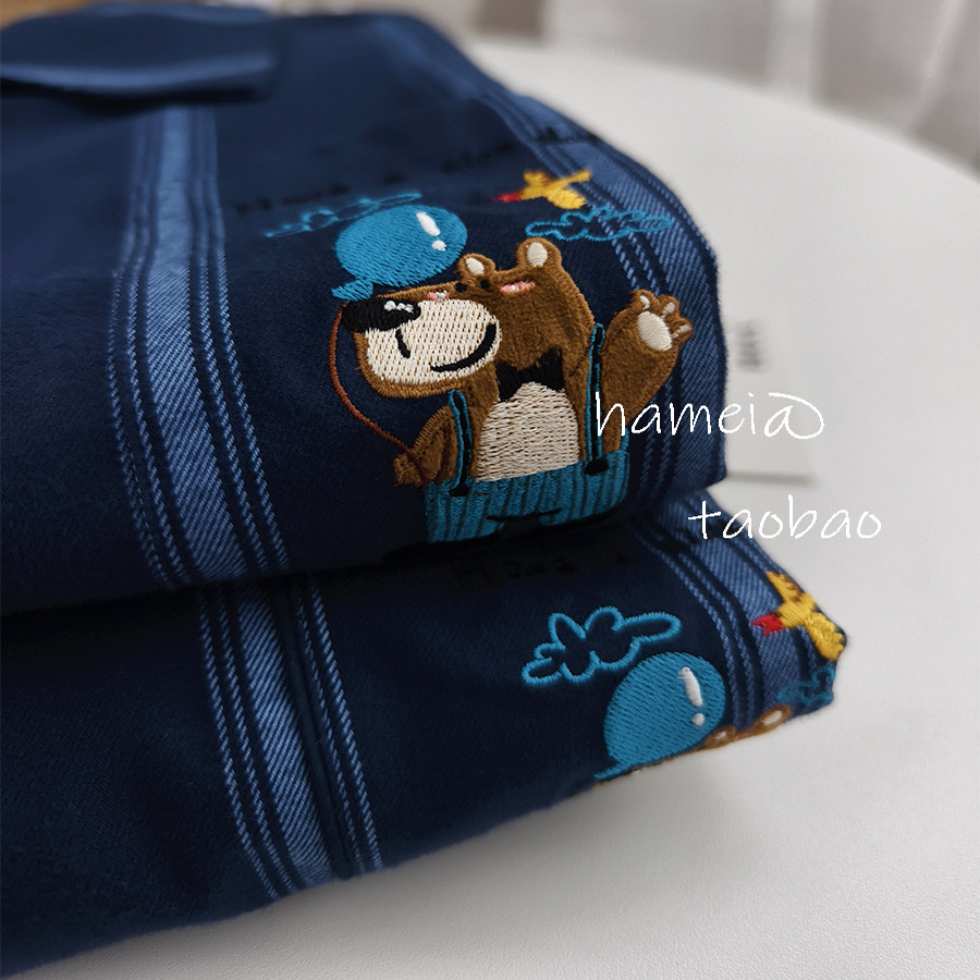 高品 ||A类气球小熊纯棉情侣秋冬梭织磨毛刺绣男睡衣女家居服套装