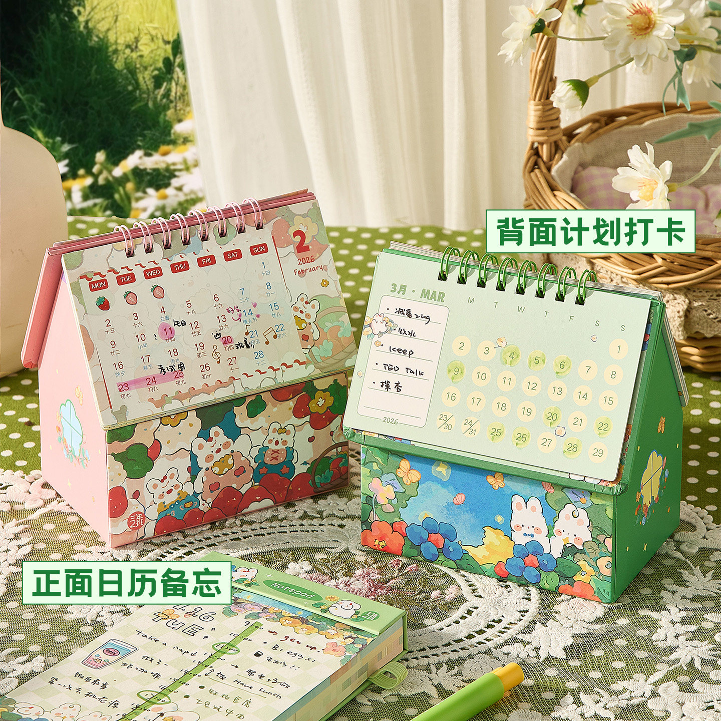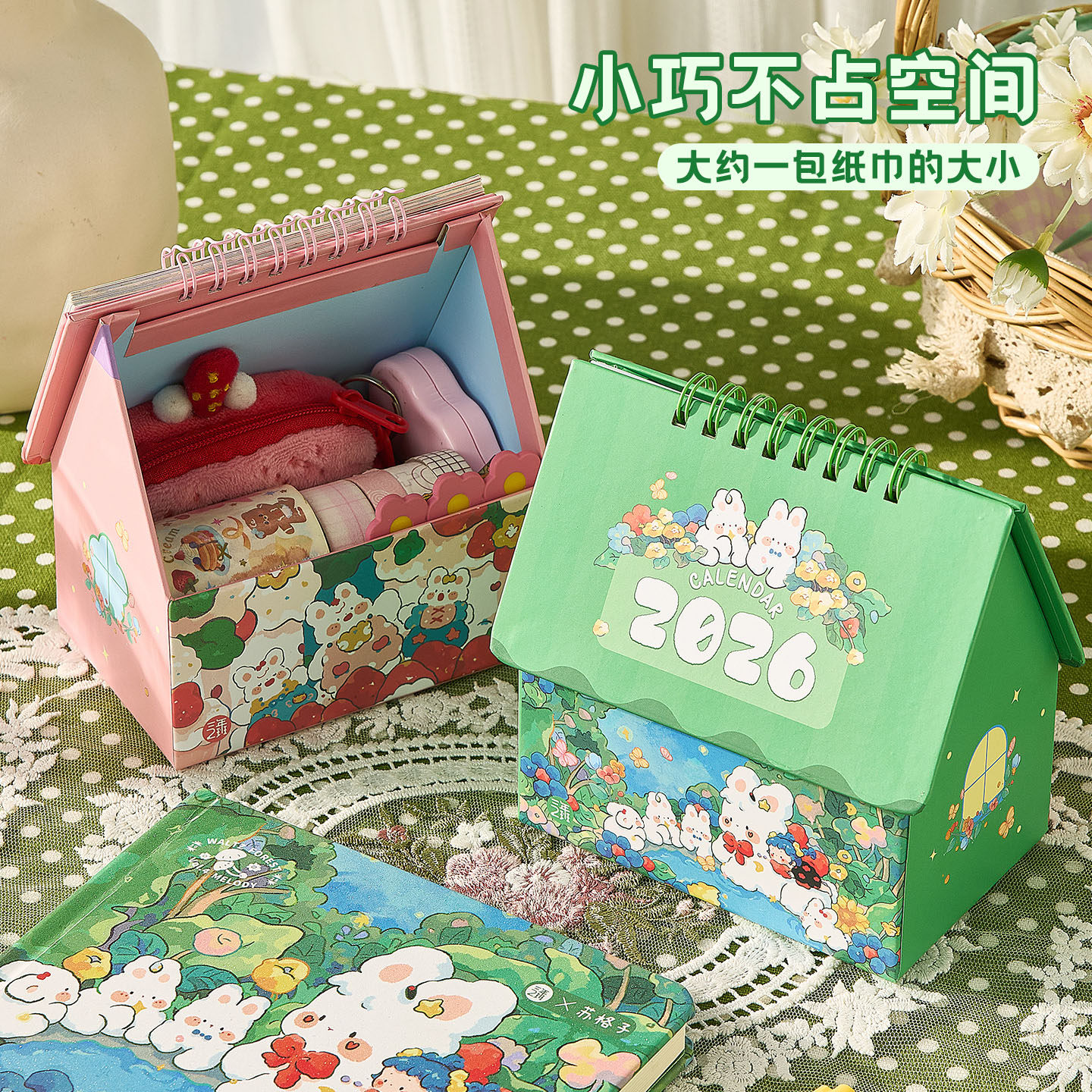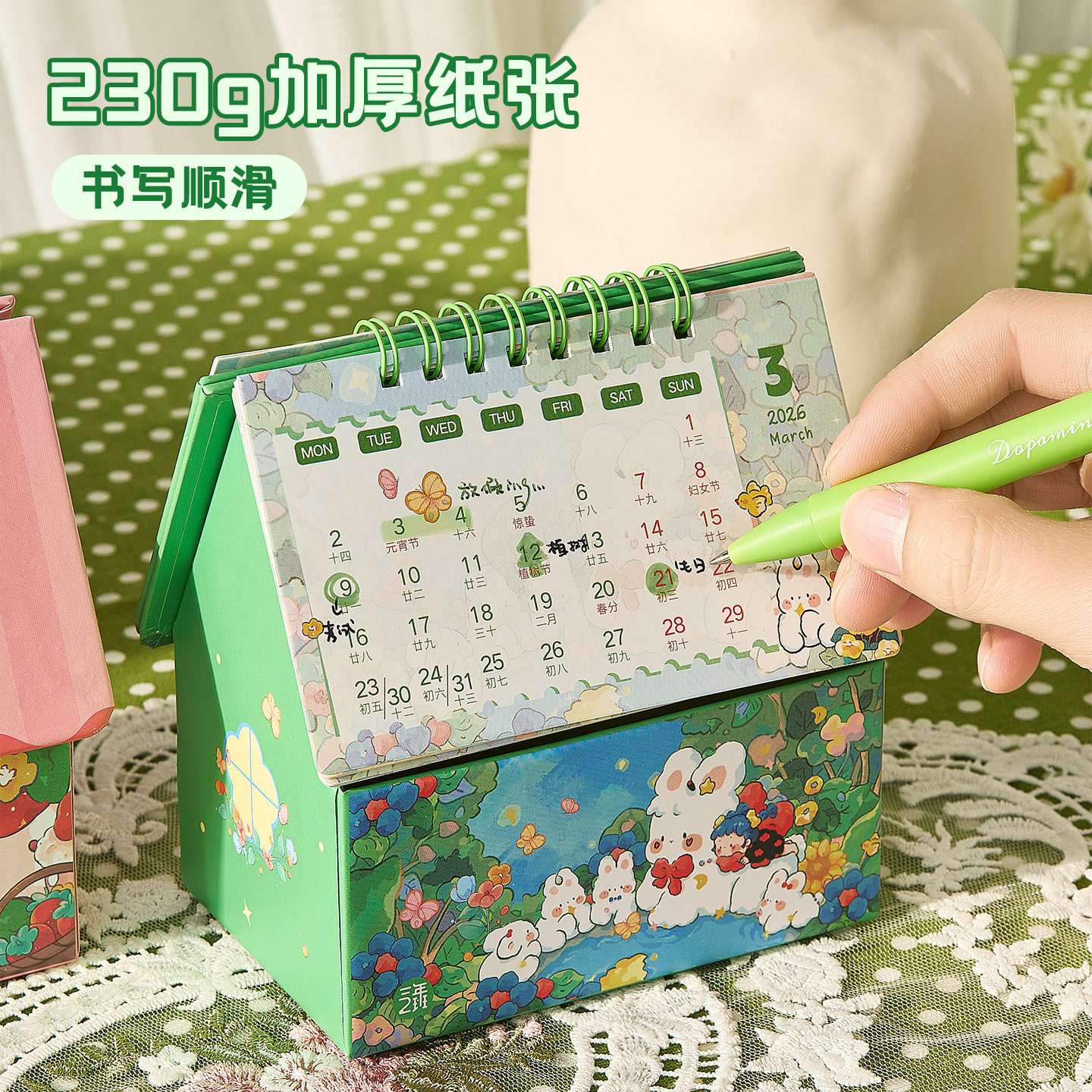 三年二班2026新款月光花园房子台历办公室计划打卡日历桌面摆件