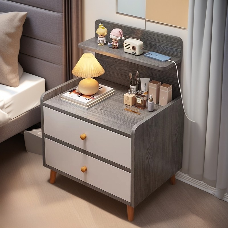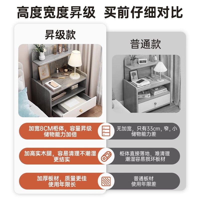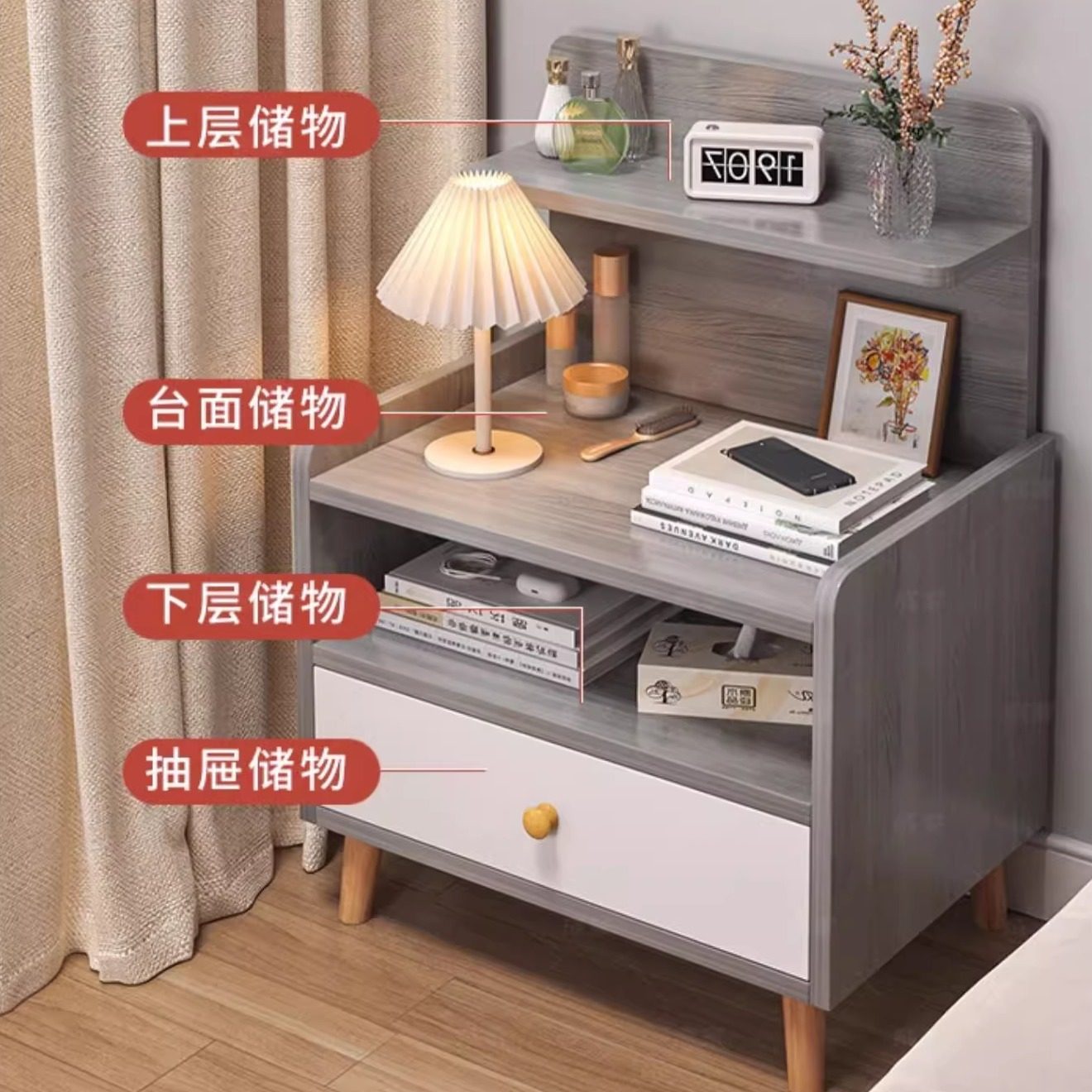 床头柜置物架小型家用卧室储物收纳替代品出租房用实木腿床边柜子