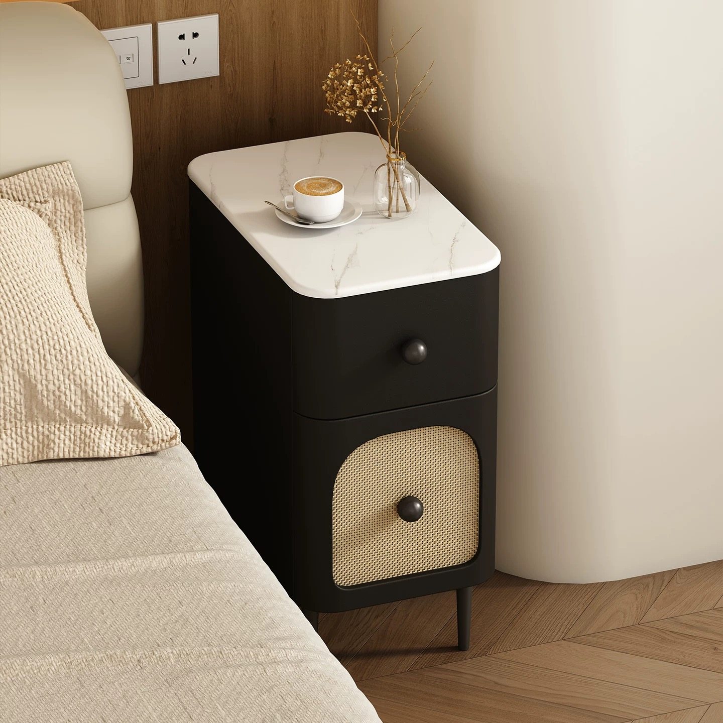 实木床头柜卧室迷你小型中古风无线充电超窄柜子置物柜迷你柜极窄