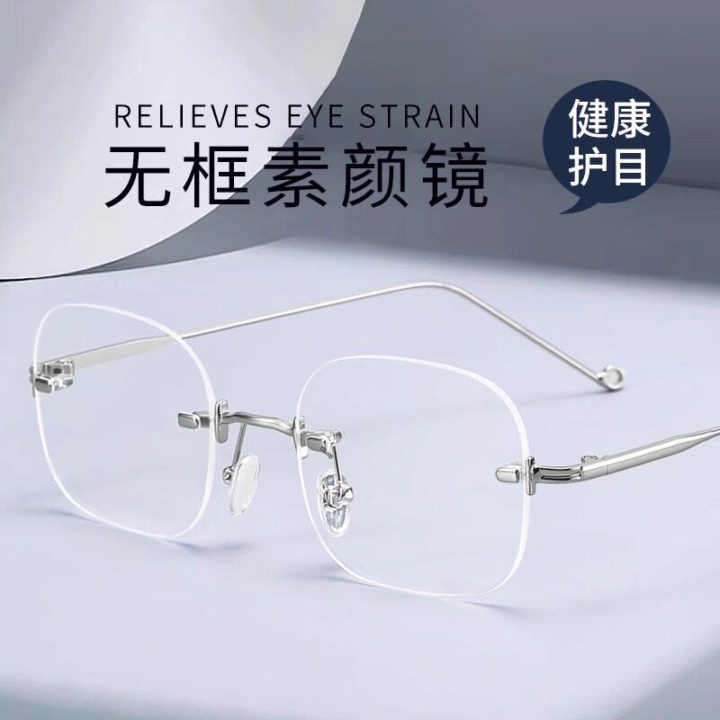目戏无框眼镜女近视可配度数可选蔡司镜片无边框眼镜框镜架23006
