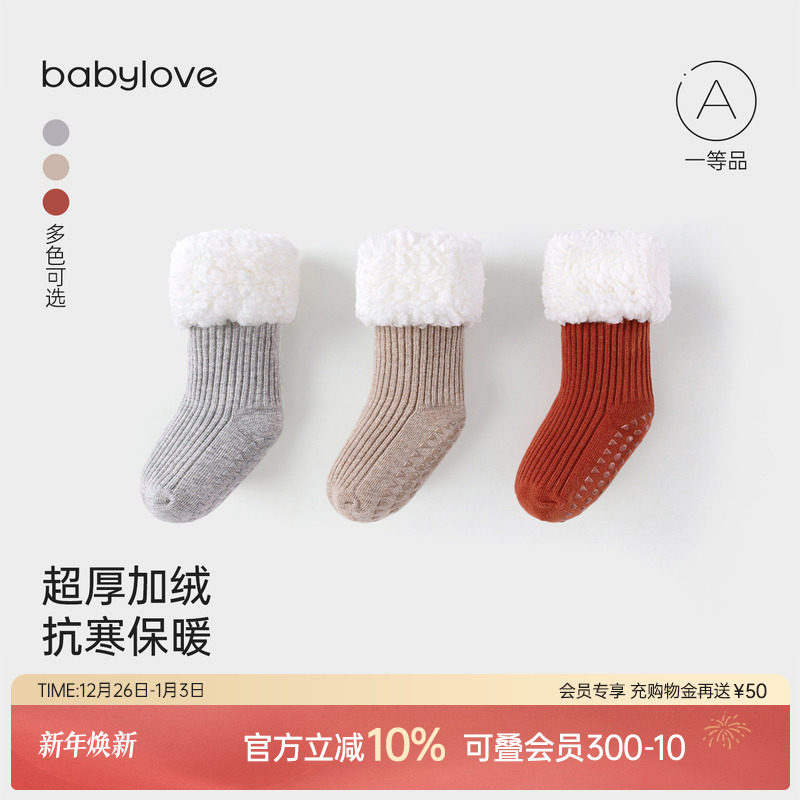 babylove婴儿长筒袜子冬季宝宝加厚保暖毛绒小腿袜百搭防滑学步袜