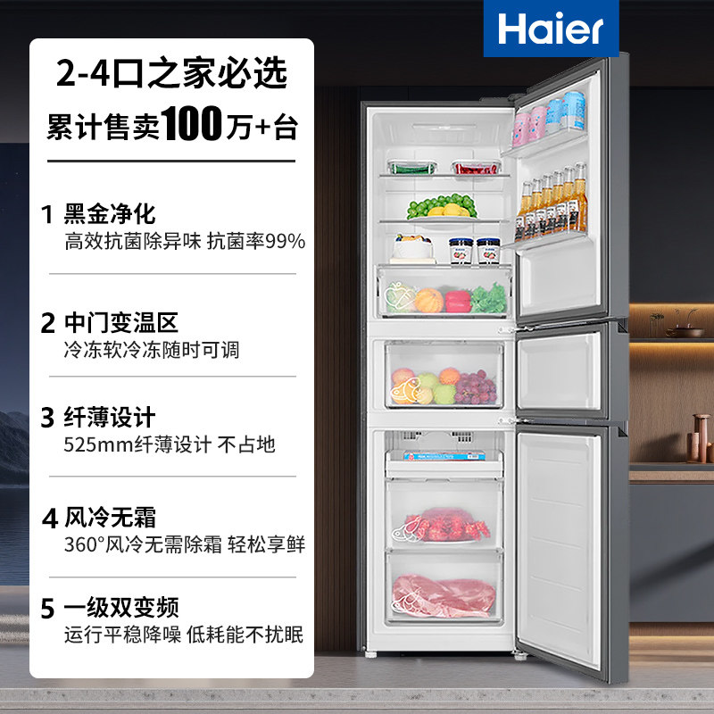以旧换新】海尔冰箱217升家用出租房用一级能效变频三门风冷无霜