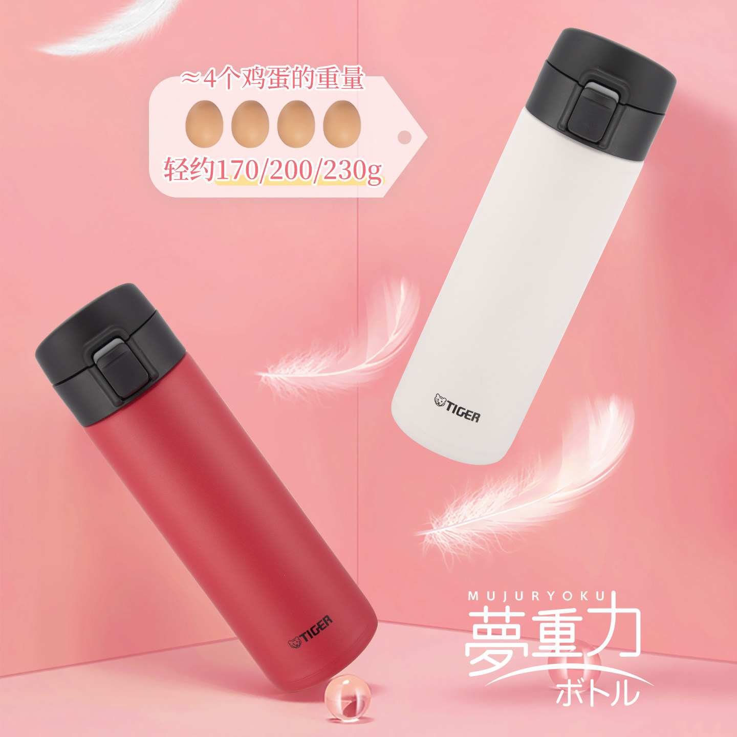 tiger虎牌便携大容量弹盖保温杯简约车载水杯女男杯子MKA-K系列