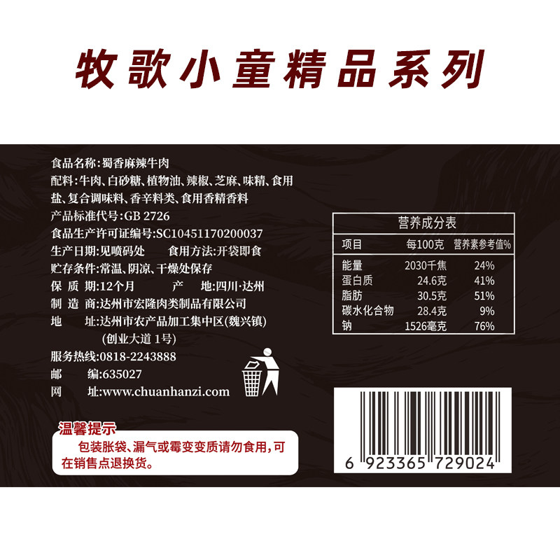 川汉子牧歌精品川味麻辣牛肉干升级独立小袋达州特产小吃零食非遗