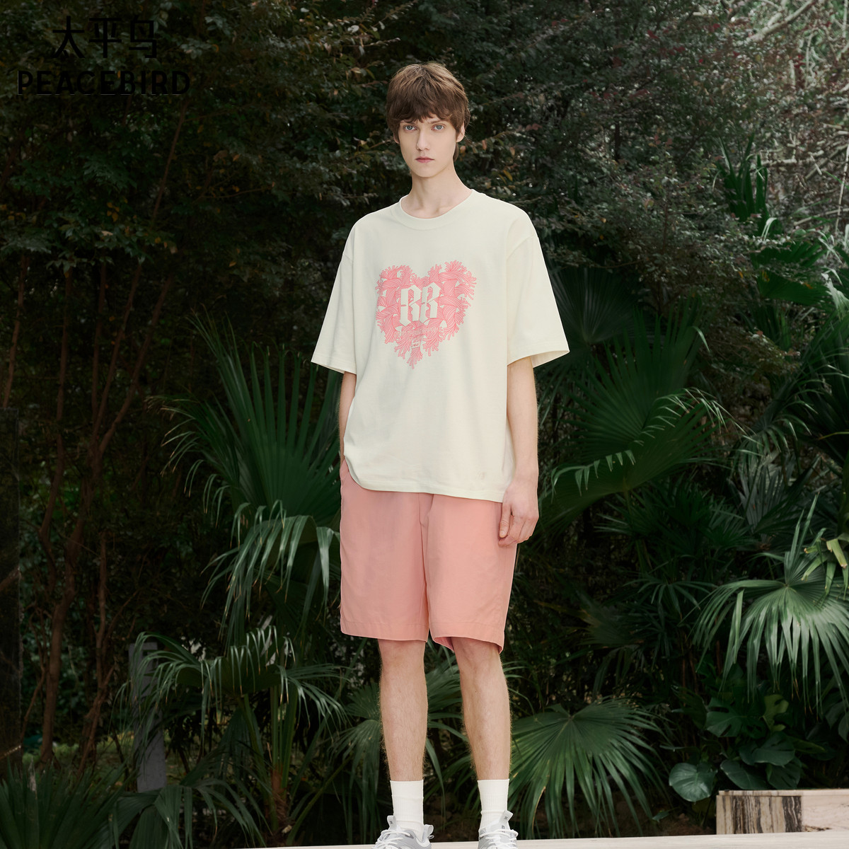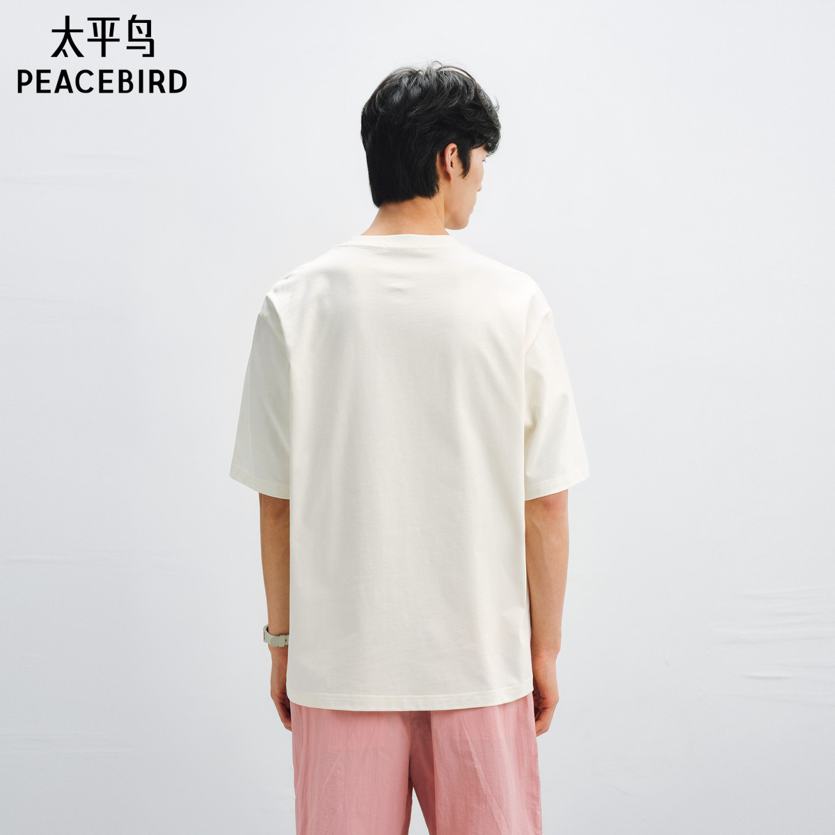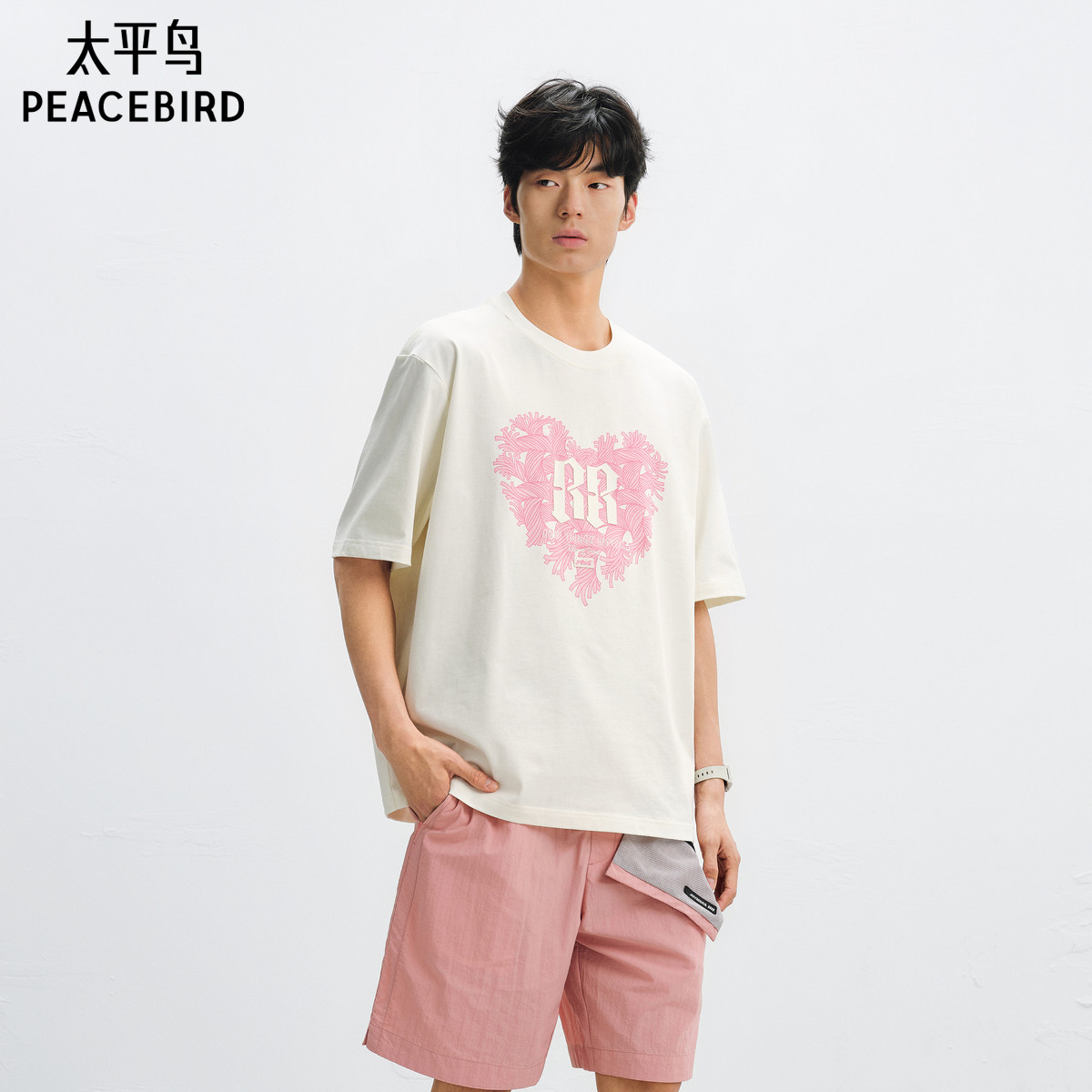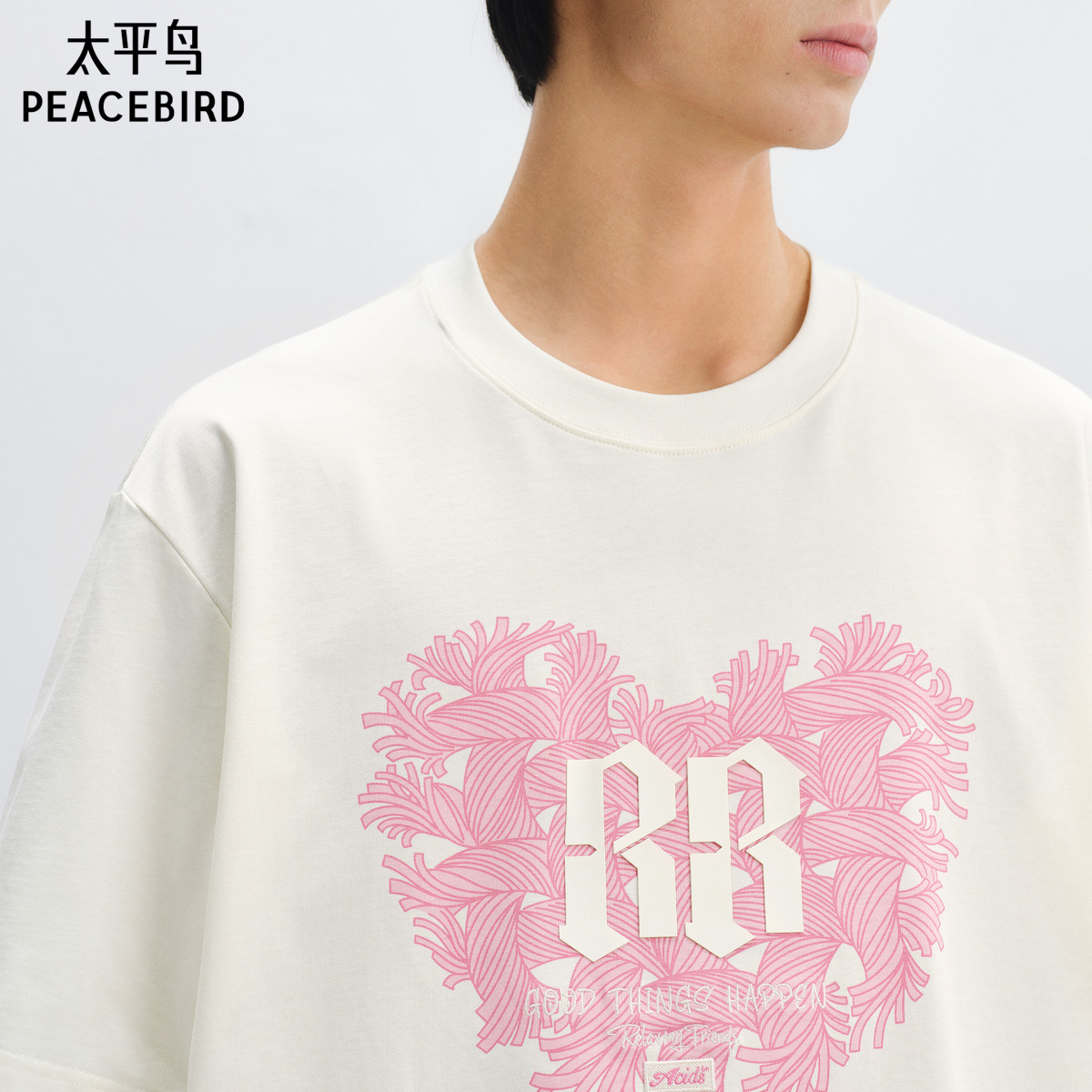 太平鸟男装美式复古印花短袖T恤青年圆领重磅宽松体恤衫