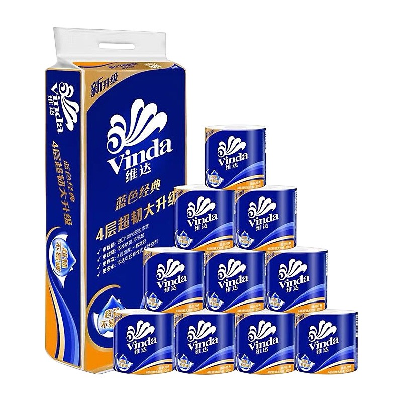 【孙颖莎推荐】维达卷纸蓝色经典卫生纸巾四层家庭装有芯卷纸厕所