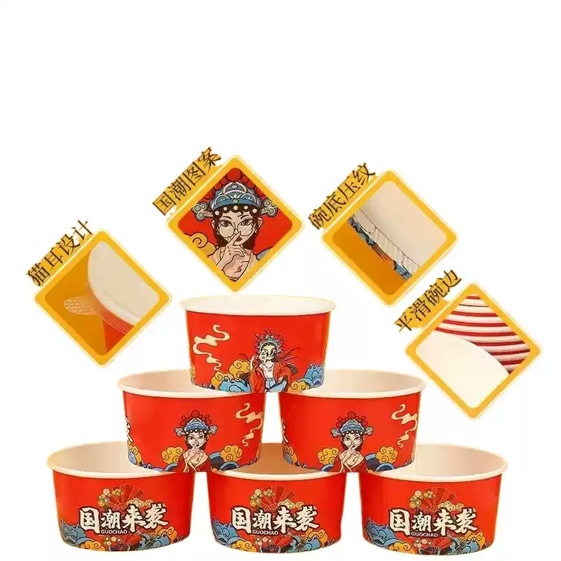 程圆商用一次性纸碗加厚圆形外卖小吃打包餐具饭盒带盖餐盒汤碗