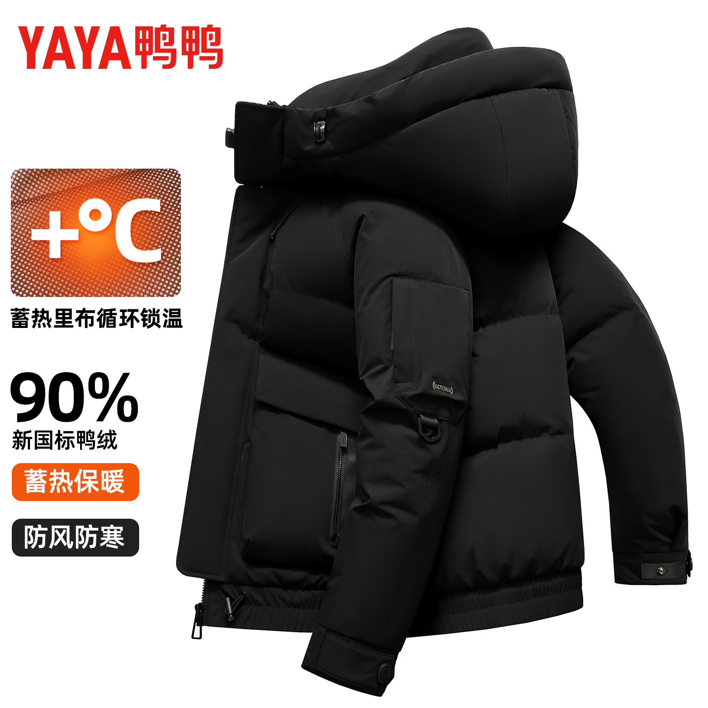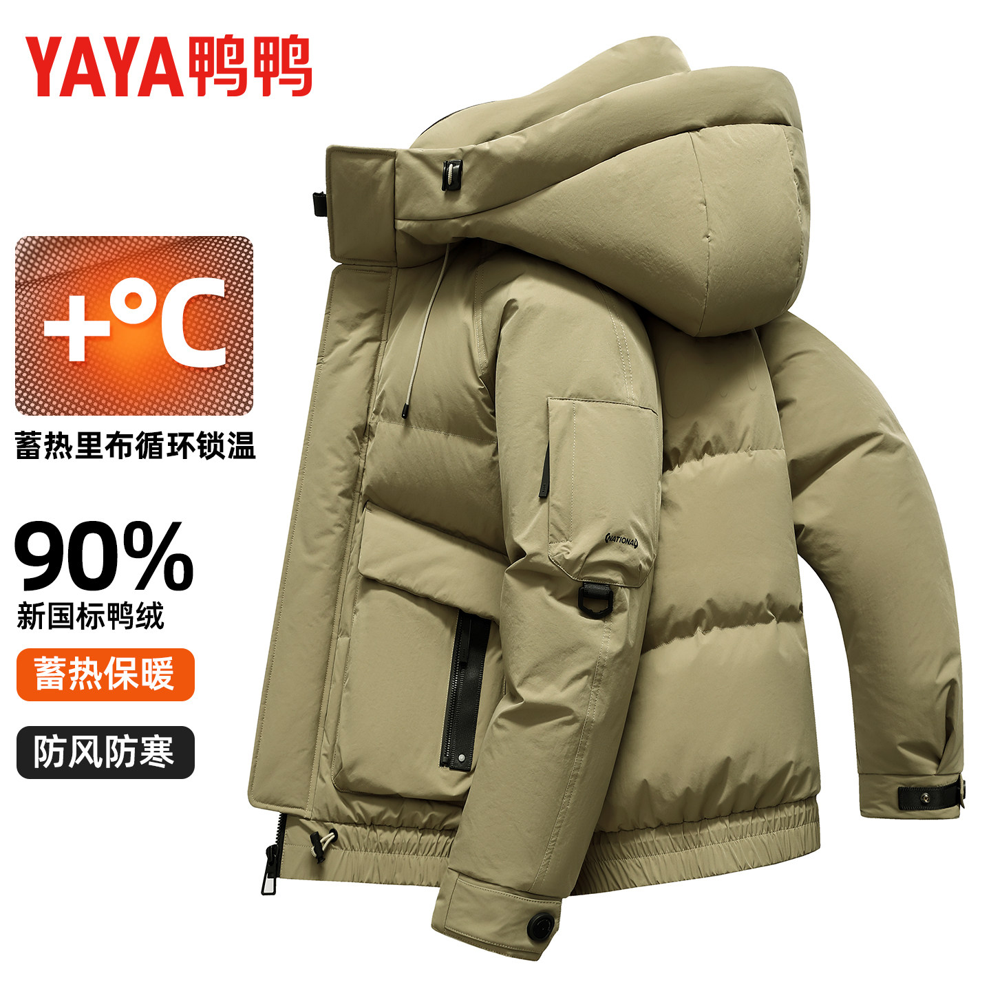 鸭鸭羽绒服男冬季2025秋冬新短款休闲连帽加厚防风保暖鸭绒外套
