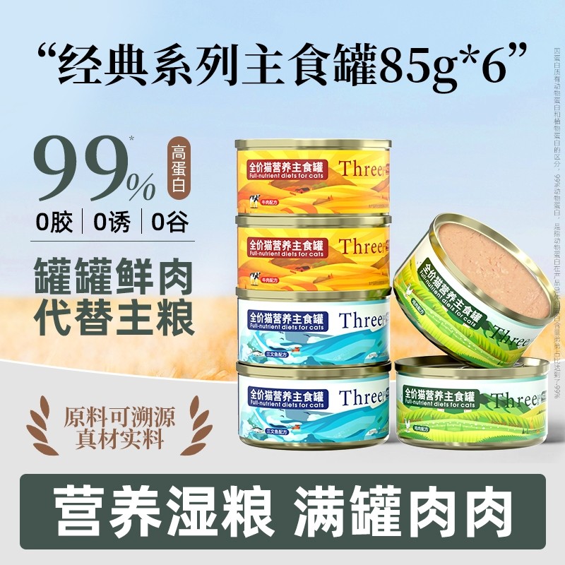 喵三餐猫罐头主食罐补充营养成幼猫猫咪主食增肥湿粮条24罐全价