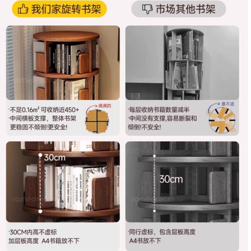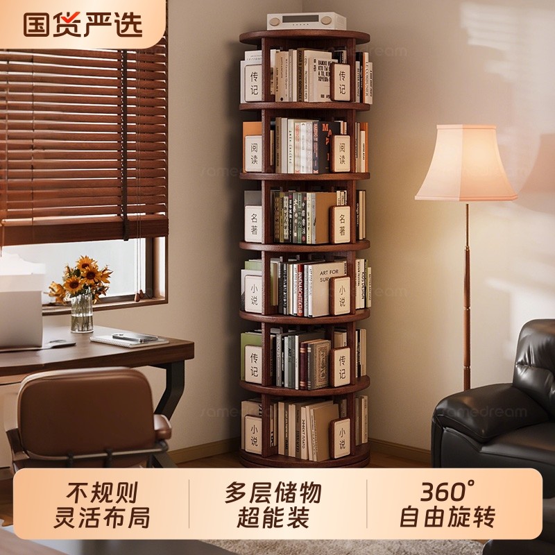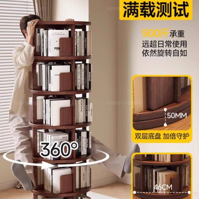 三梦360°实木旋转书架落地置物架书柜一体靠墙客厅儿童转角柜子