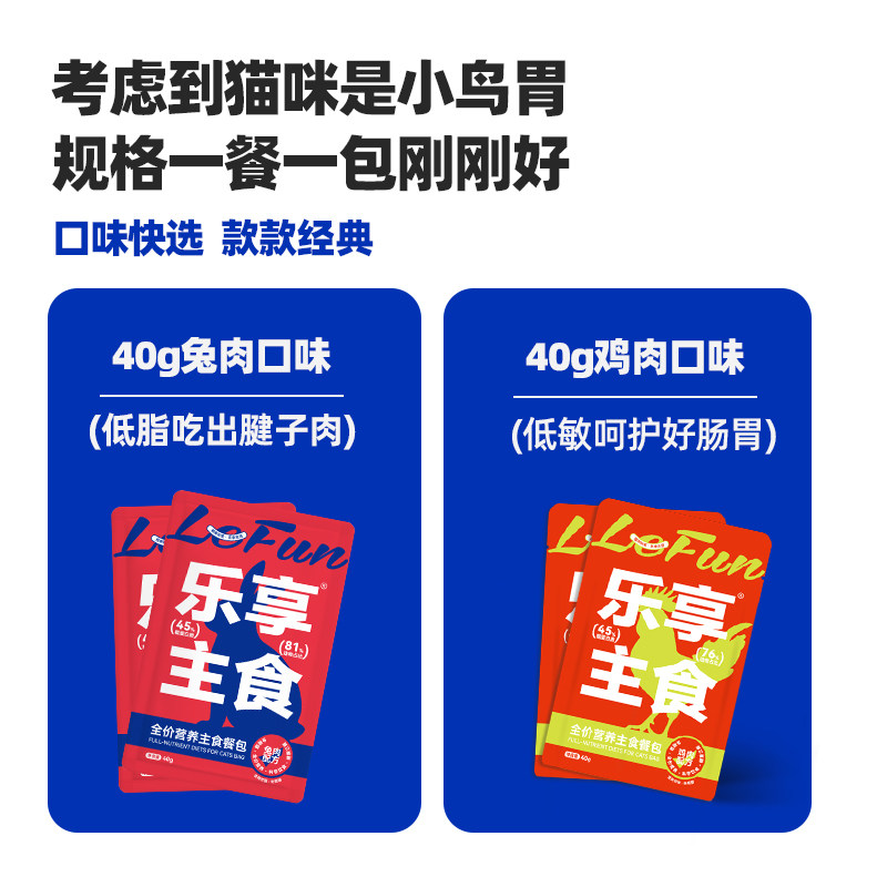 乐享主食猫饭兔肉味鸡肉味湿粮包非猫罐头可代替猫粮40g鲜粮包