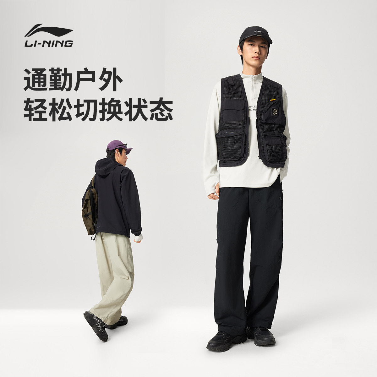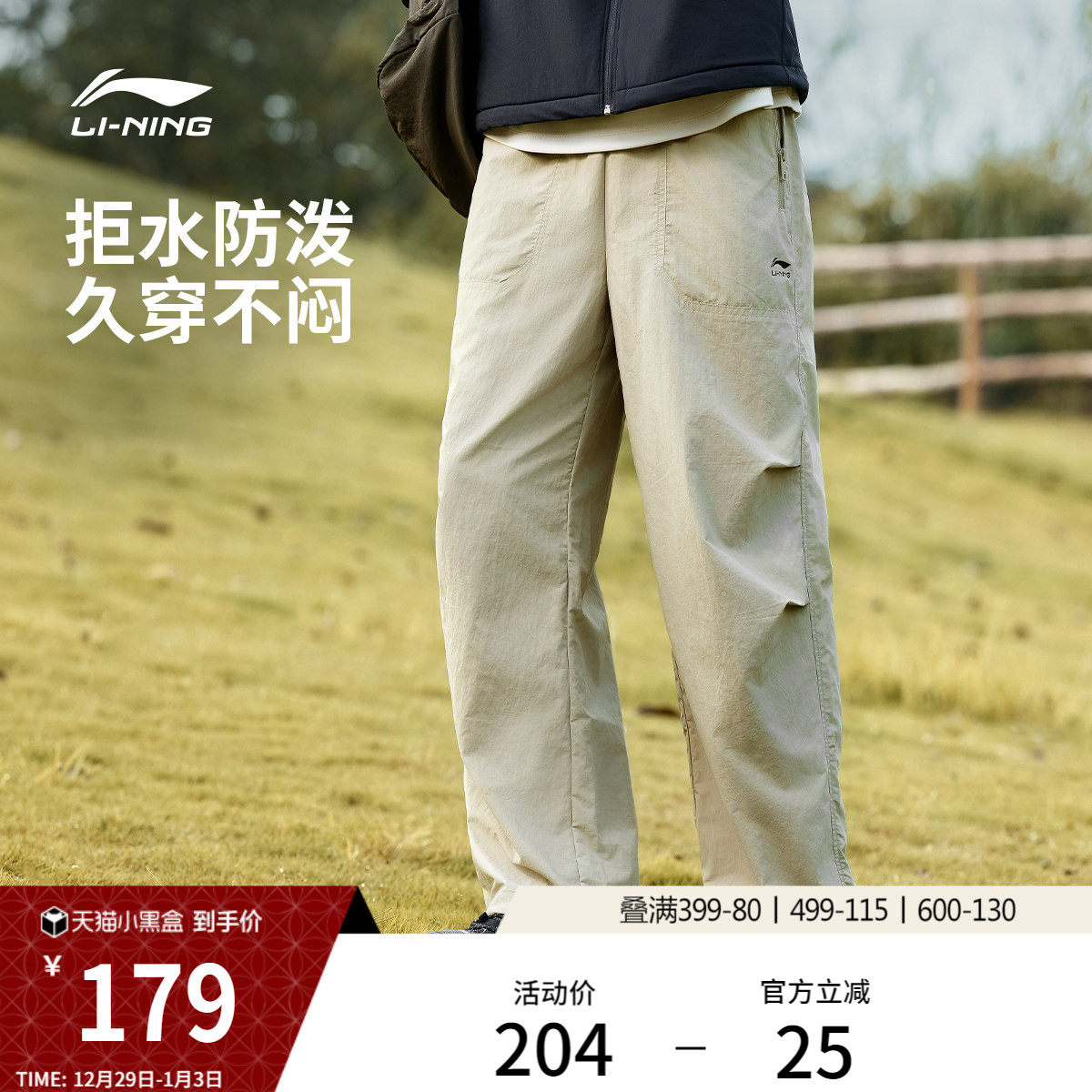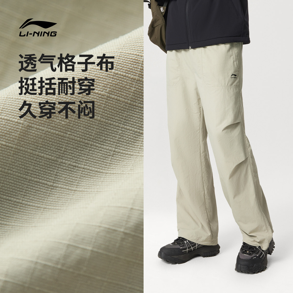 李宁阔腿裤男士新款宽松伞兵裤休闲工装运动裤直筒户外梭织运动裤