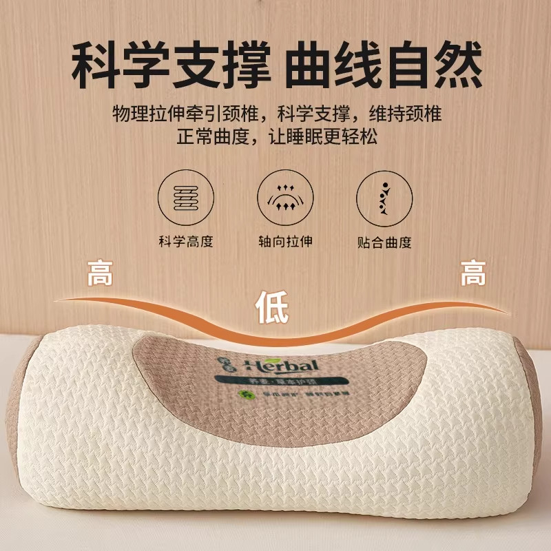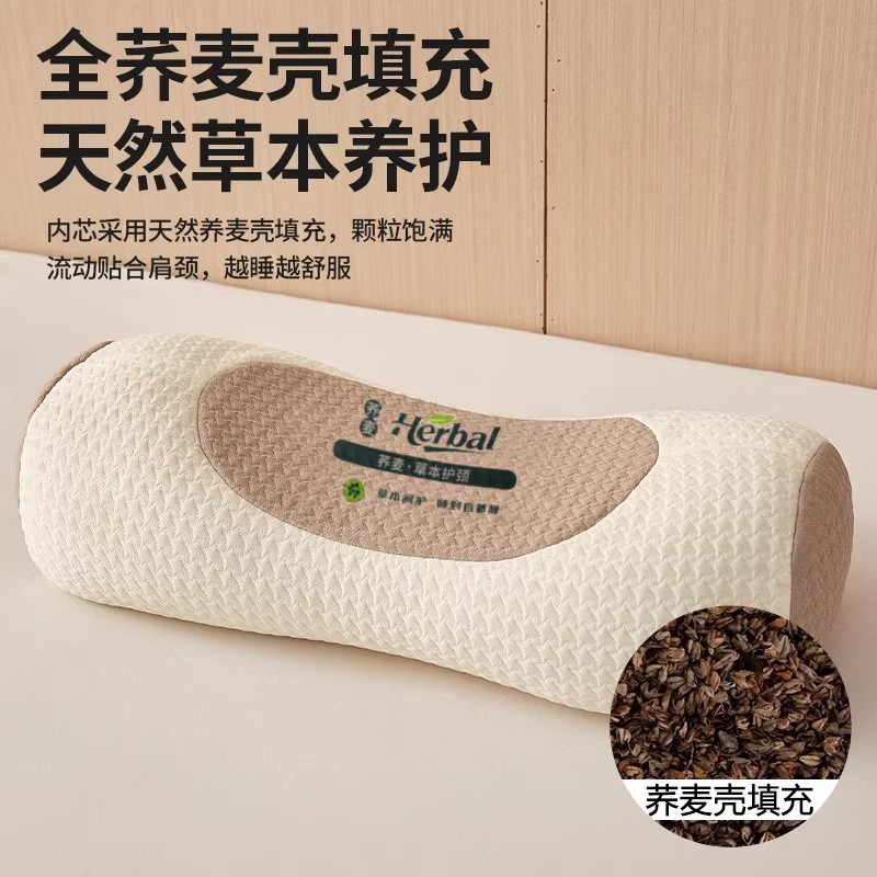 枕头颈椎专用全荞麦壳皮护颈枕芯双人反弓牵引圆柱枕男硬脖枕曲度