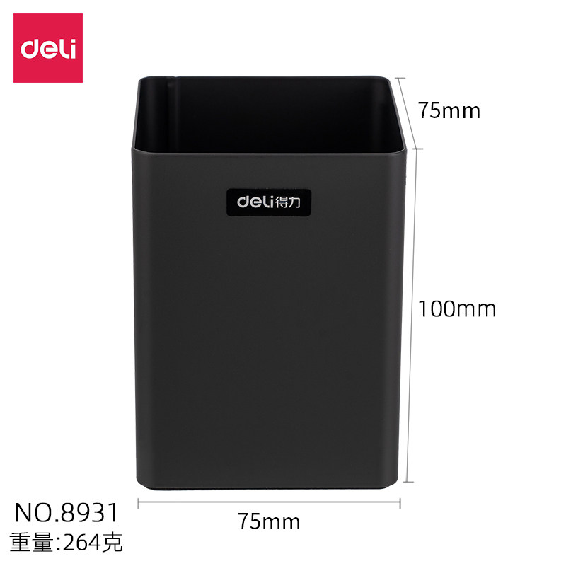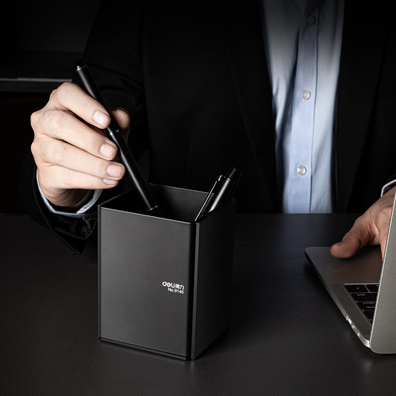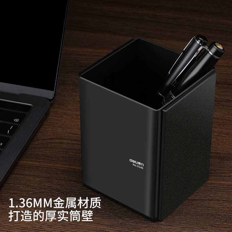 得力金属商务笔筒桌面办公大容量多功能收纳笔插方形创意简约时尚展会摆件磨砂质感学生笔筒可定制企业logo