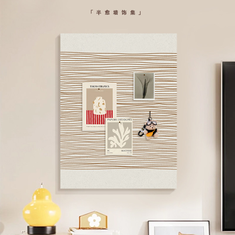 定制毛毡板创意线条照片墙法式高级感墙面装饰画免打孔软木板墙贴