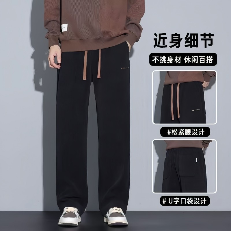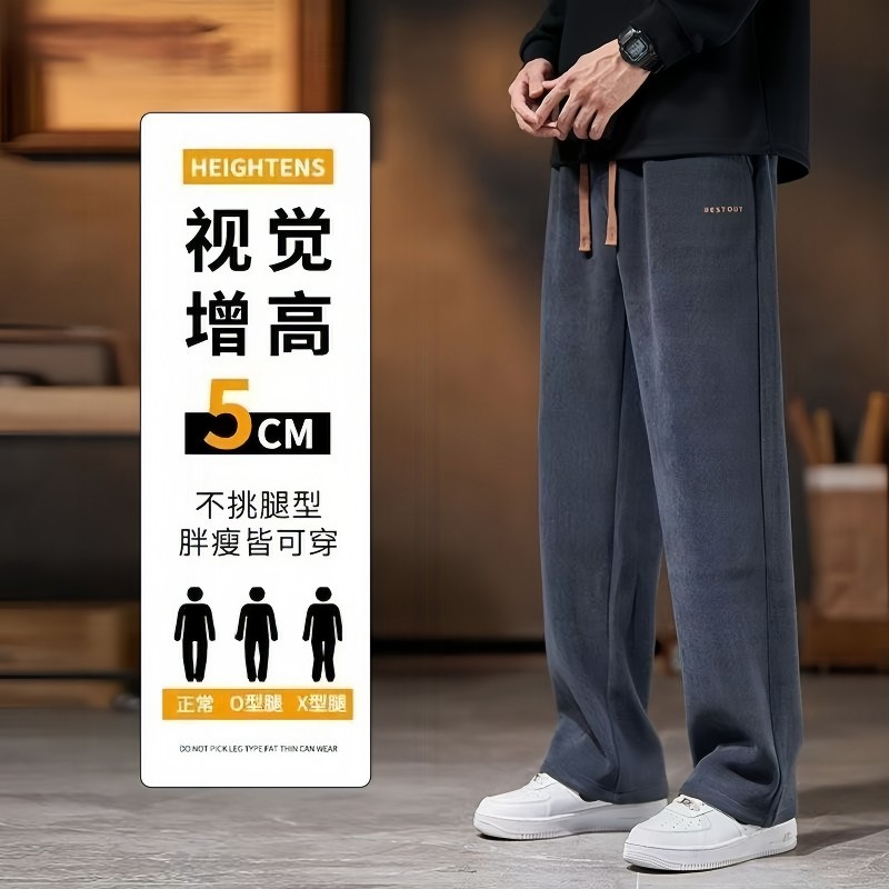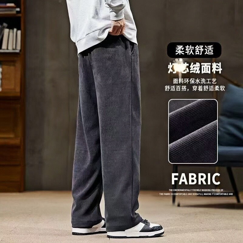 雪尼尔男士休闲裤秋冬2025新款直筒宽松长裤加绒运动灯芯绒卫裤子