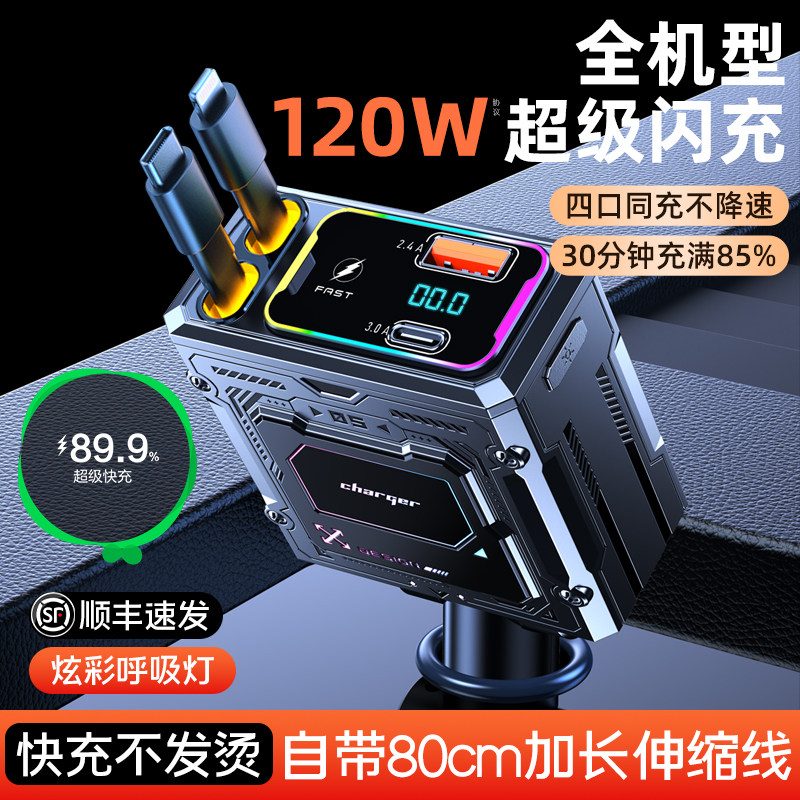 星空氛围灯120W适用于苹果华为车载超级快充充电器四合一通用车充
