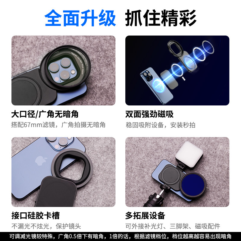 JJC 手机滤镜磁吸底座 magsafe滤镜摄影拍照适用苹果iPhone17 14/15/16 pro/promax/16 plus镜头减光镜偏振镜
