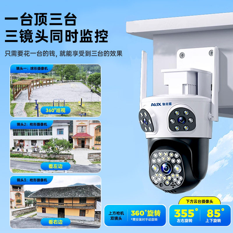 奥克斯监控器360度无死角室外高清夜视家用手机远程4g店铺摄像头