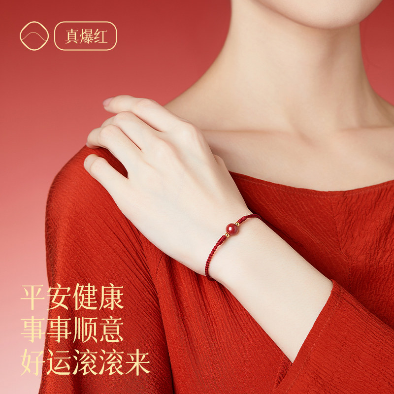周大生好柿花生红玛瑙手串纯银国风设计感手链女本命年礼物送女友