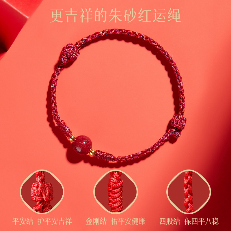 2026本命年红绳手链女朱砂手串编织男转运珠红手绳脚链金刚结好运