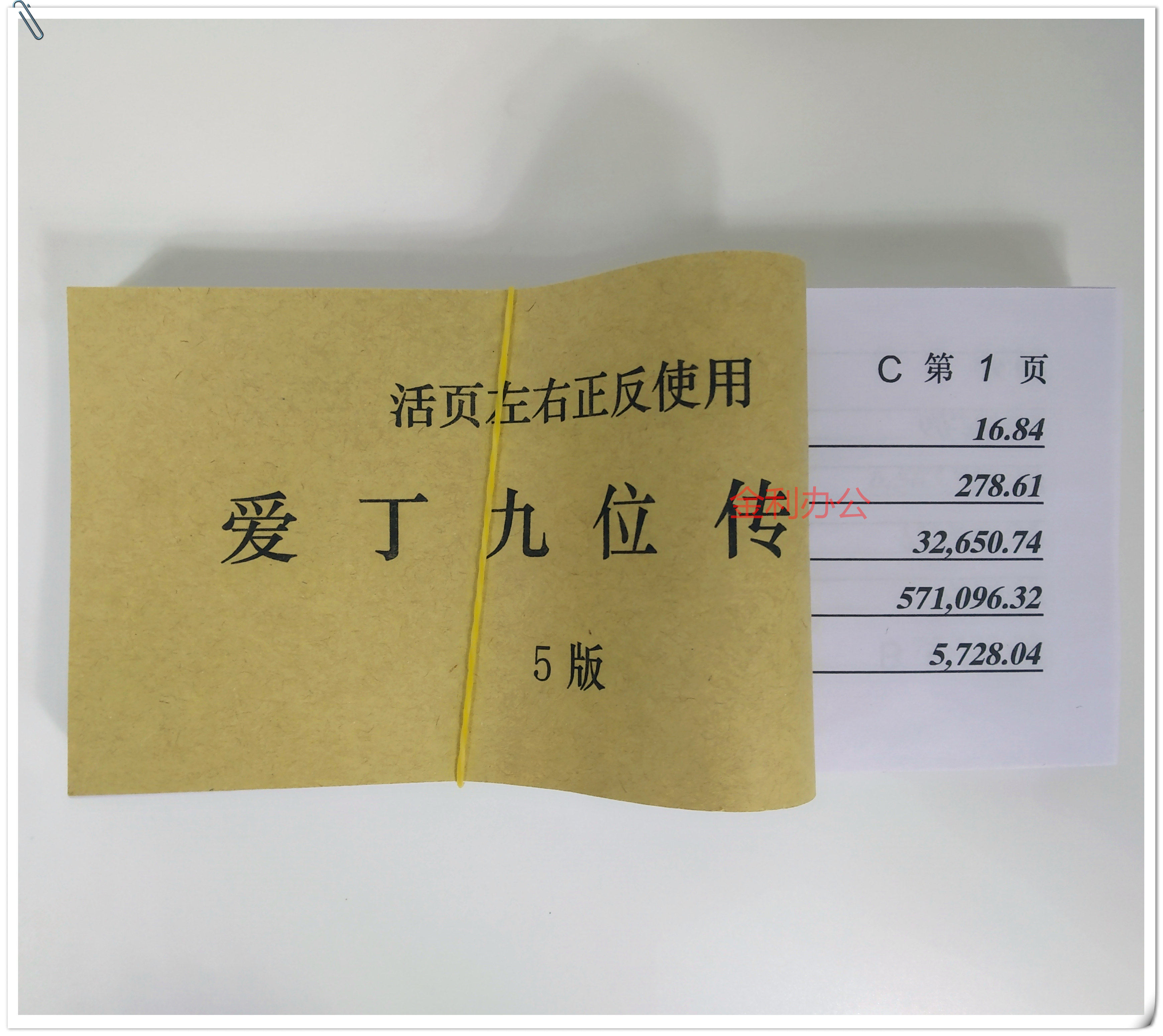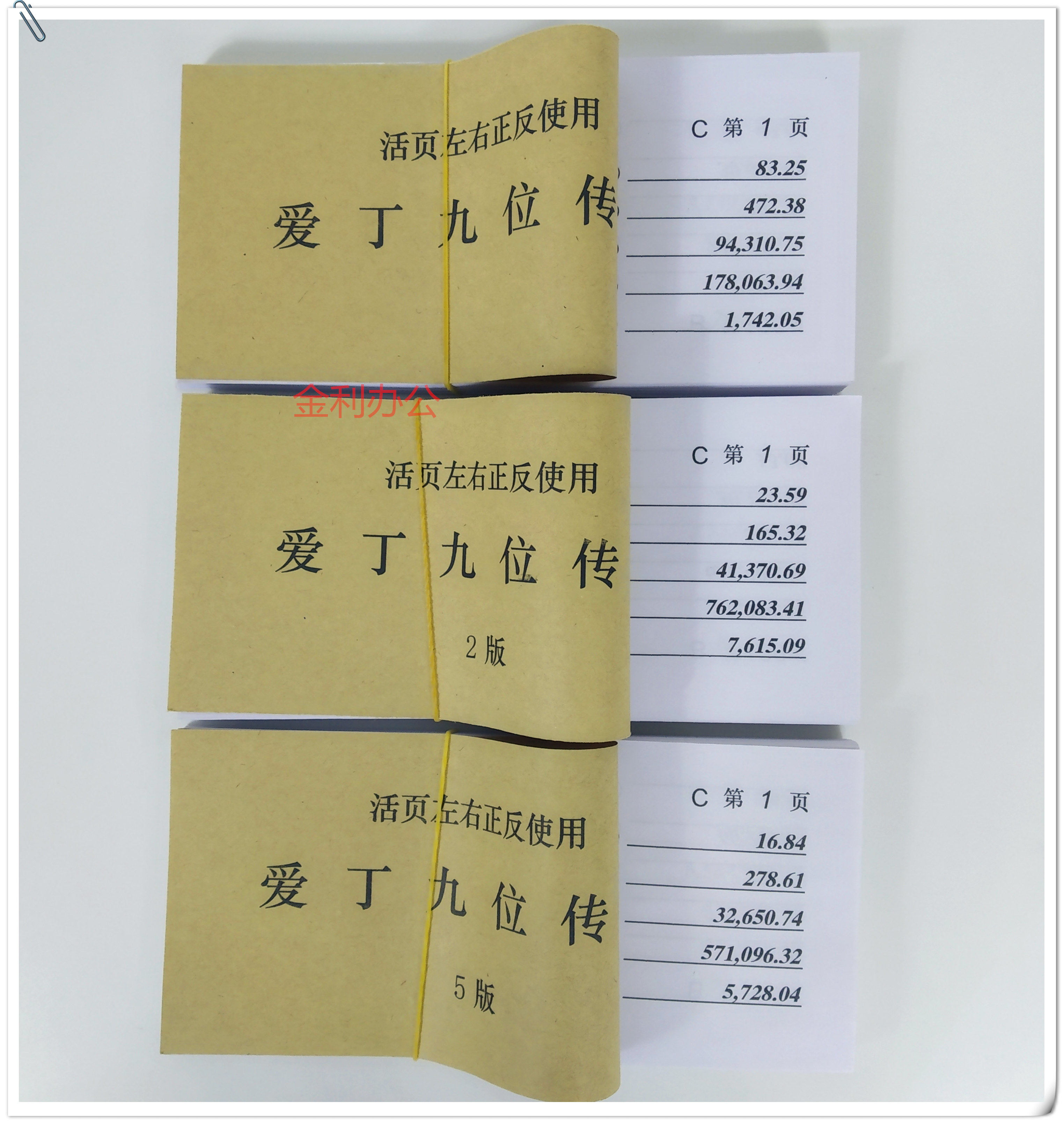 爱丁九位活页传票1 2 5版学校银行会计技能传票对角五排翻打传票