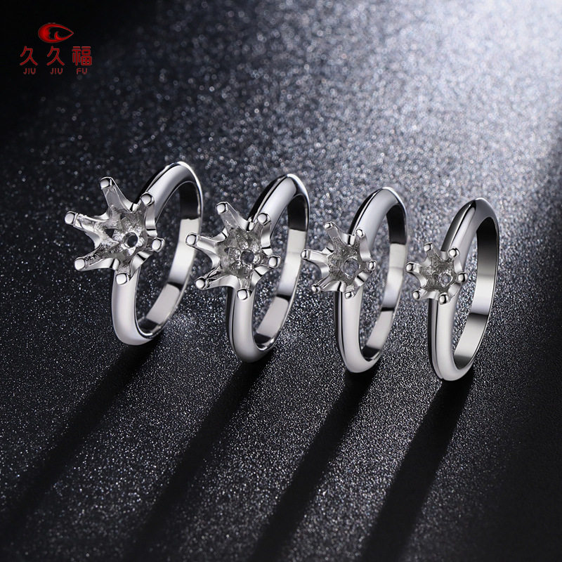 久久福银饰925纯银韩版经典款六爪闭口空托钻戒银饰品厂家批发