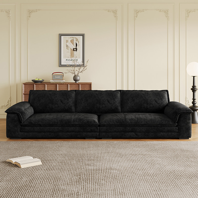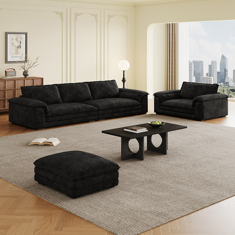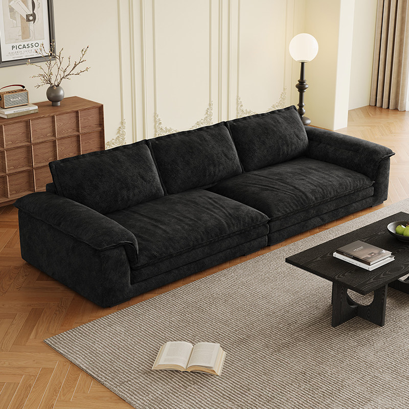帆船布艺沙发客厅大平层别墅黑色宽大坐深直排三人位雪尼尔绒沙发