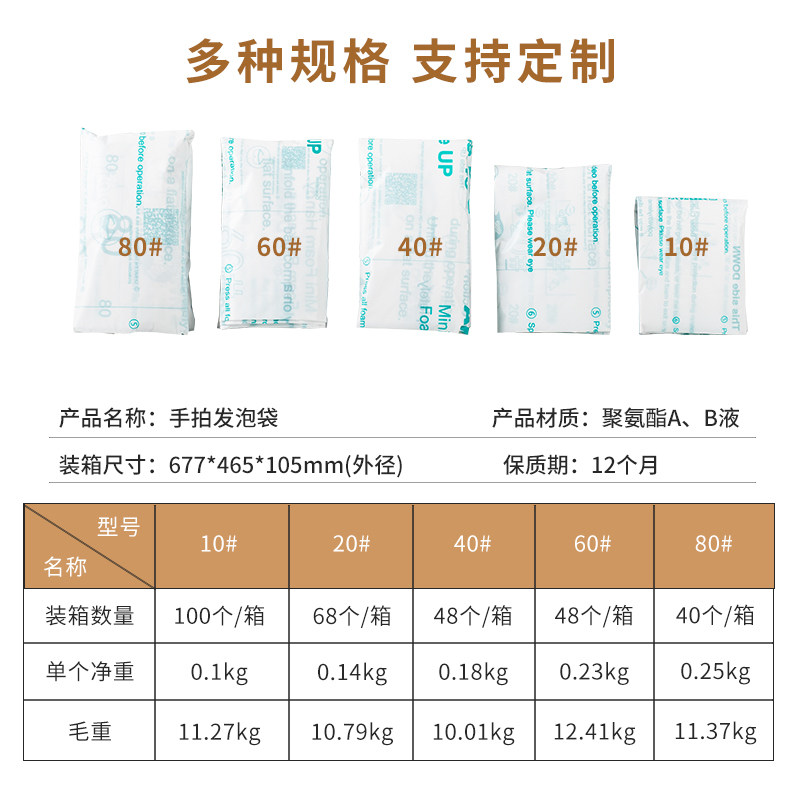 聚氨酯按压发泡包装袋快递打包缓冲防震现场发泡包装ab手拍发泡袋