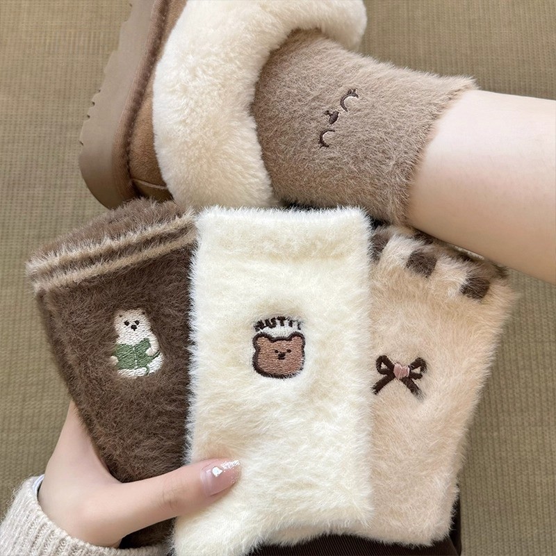 水貂绒袜子女秋冬加厚保暖珊瑚绒中筒袜可爱毛绒居家睡眠月子长袜